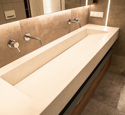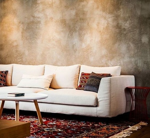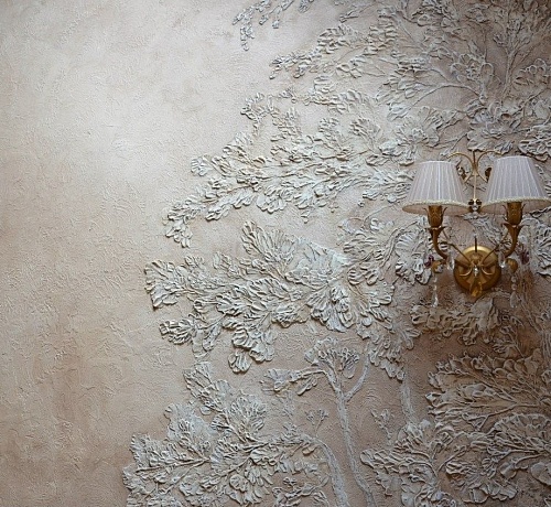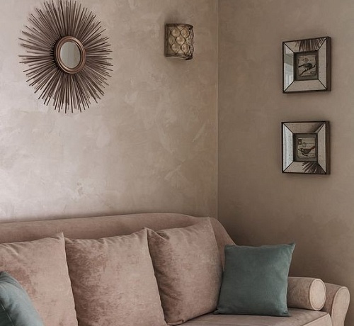Универсальный отделочный материал, гротто декоративная штукатурка, может использоваться в разных помещениях дома: жилых комнатах, кухне, санузлах. При нанесении «карты мира» в ванной или туалете дополнительно применяют покрытие специальным воском для защиты стен от влаги.