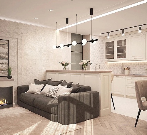 Очень часто в квартирах мало свободного пространства, однако хочется иметь место для семейного времяпровождения и при этом использовать больше территории для приготовления пищи. Кухня- гостиная дает такую возможность, не прибегая при этом к захламлению пространства.