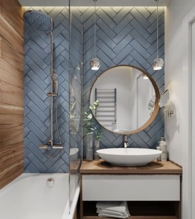 Классический синий и белый создадут впечатление спа-пространства, мозаичная плитка в этих цветах будет ярким акцентом. Синий — цвет спокойствия и уверенности, надежности и безмятежности.
