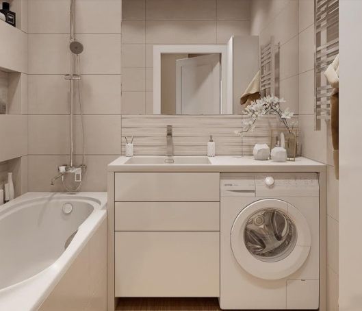 Дизайн ванной комнаты со стиральной машинкой