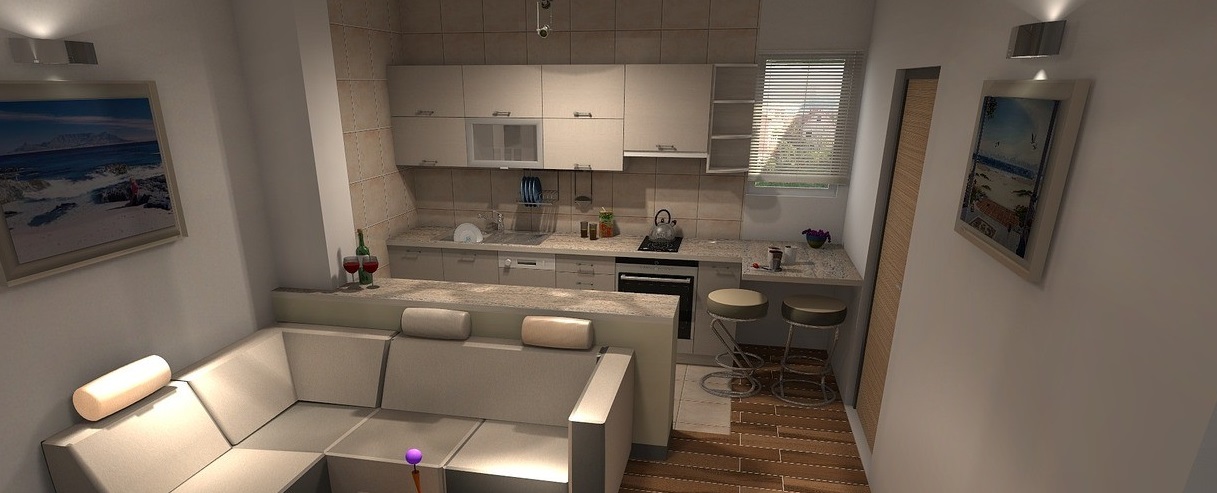 Очень часто в квартирах мало свободного пространства, однако хочется иметь место для семейного времяпровождения и при этом использовать больше территории для приготовления пищи. Кухня- гостиная дает такую возможность, не прибегая при этом к захламлению пространства.