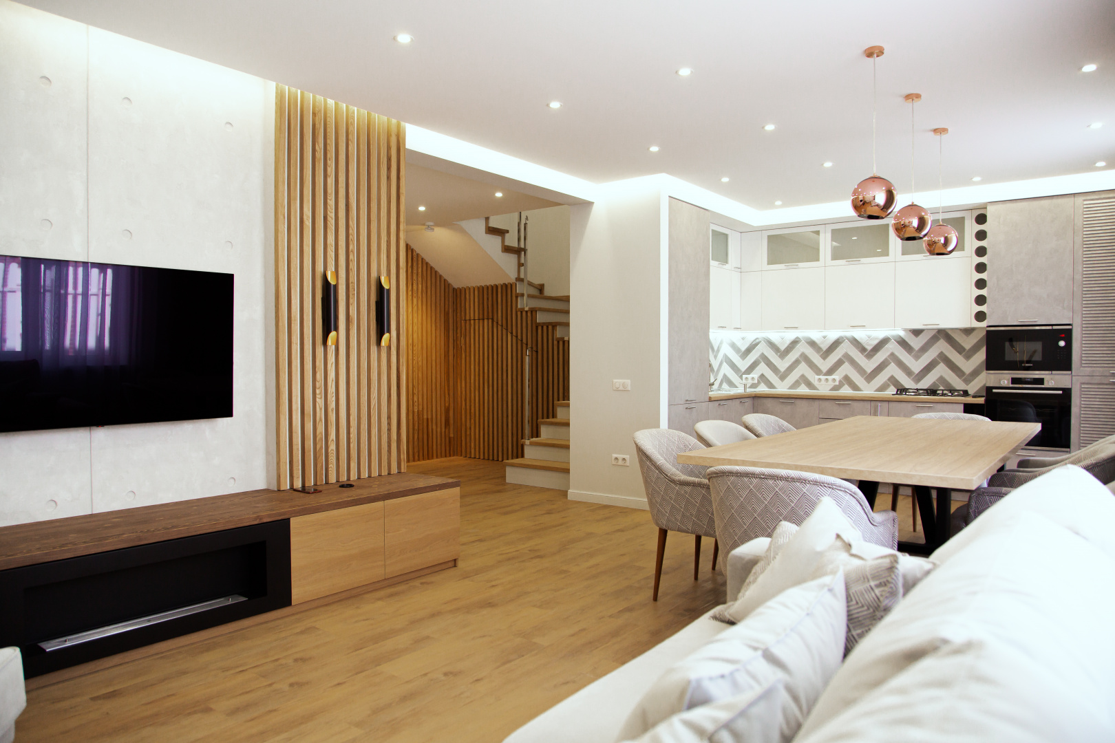 Современное освещение в гостиной предполагает использование нескольких типов светильников, которые гармонично сочетают между собой, чтобы добиться функционального и красивого решения.