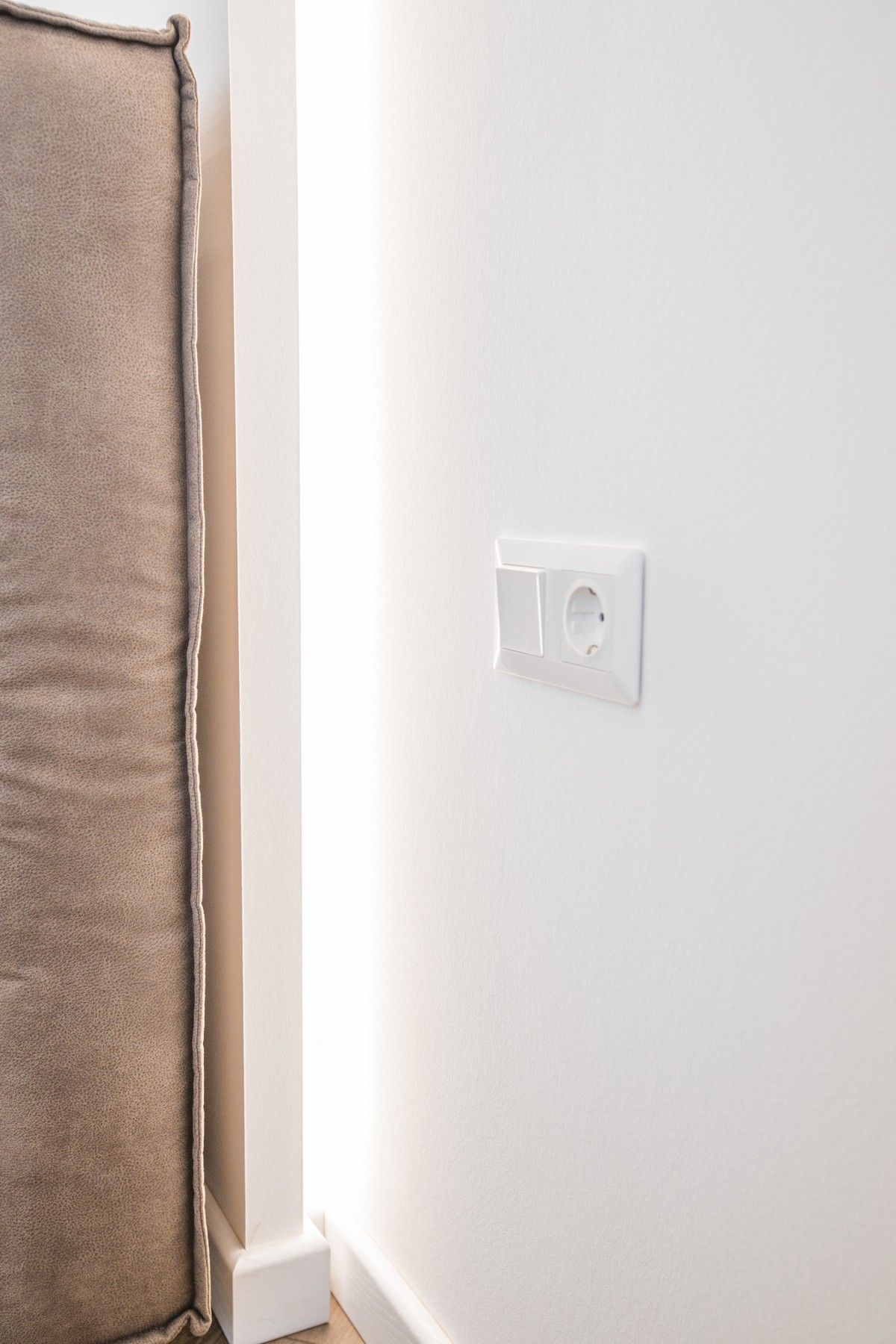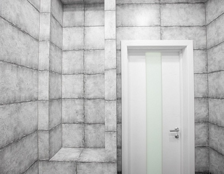 Мы оштукатурили стены по маякам во всей квартире, чтобы создать идеально ровную поверхность, а после – оклеили гладким флизелином и окрасили.