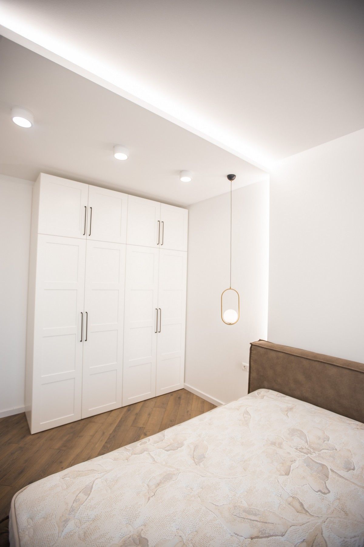 Скрытые двери, обилие белого цвета, трековый свет: проект в минимализме для ценителей современных интерьеров.