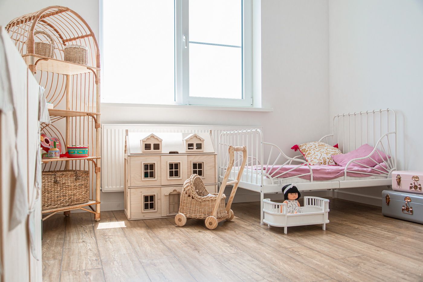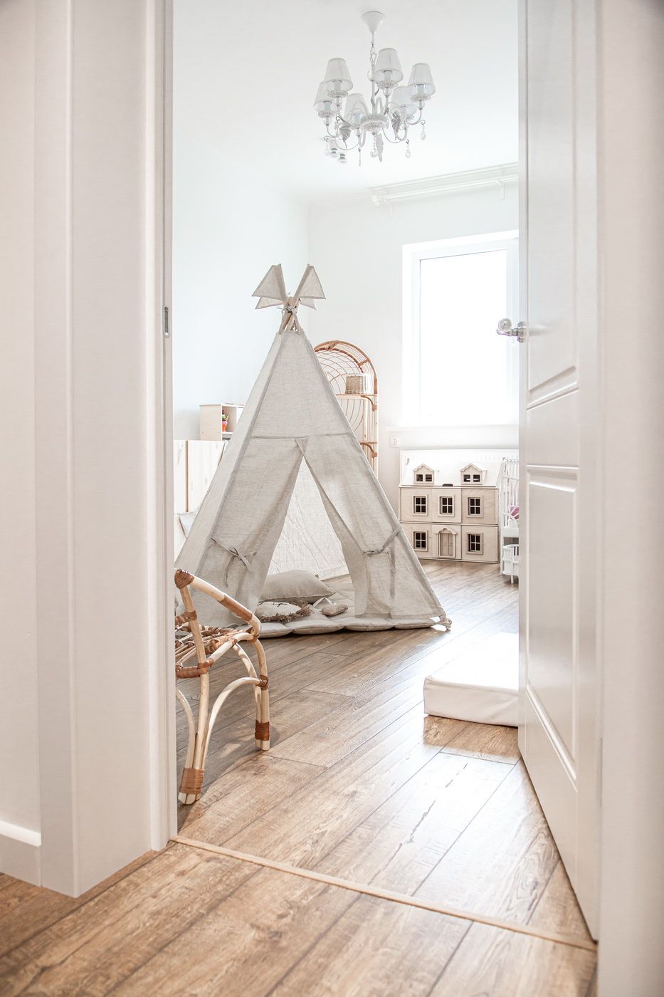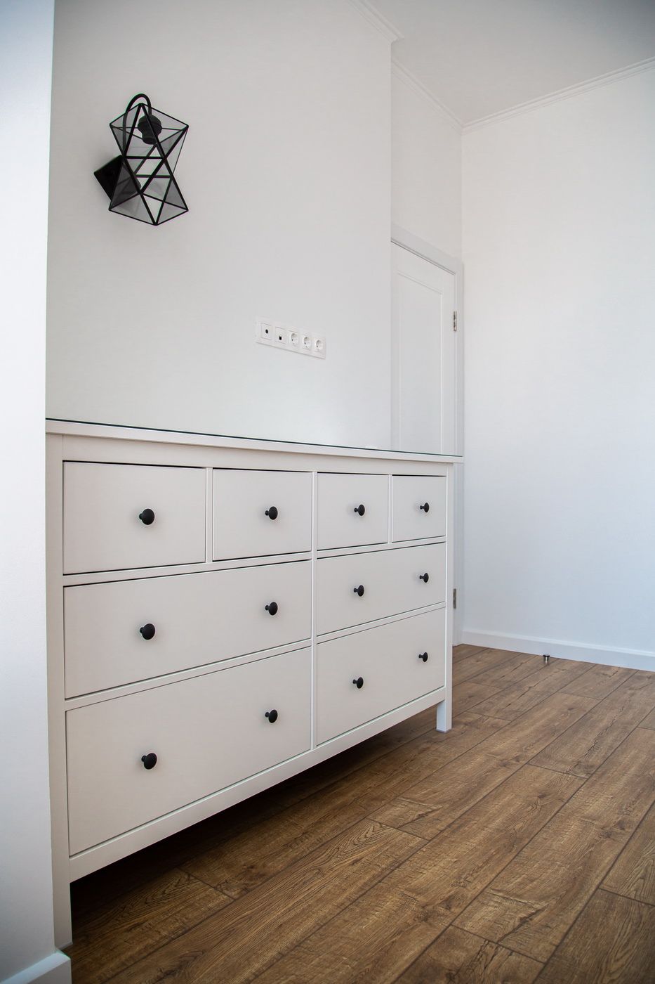 Мы выстроили новые межкомнатные перегородки из гипсокартона, залили стяжку в разных уровнях, чтобы разные напольные покрытия получились в одной плоскости. Все стены идеально выровняли и покрасили в белый цвет. Такое решение позволило визуально еще больше увеличить пространство и реализовать идею скандинавского стиля.