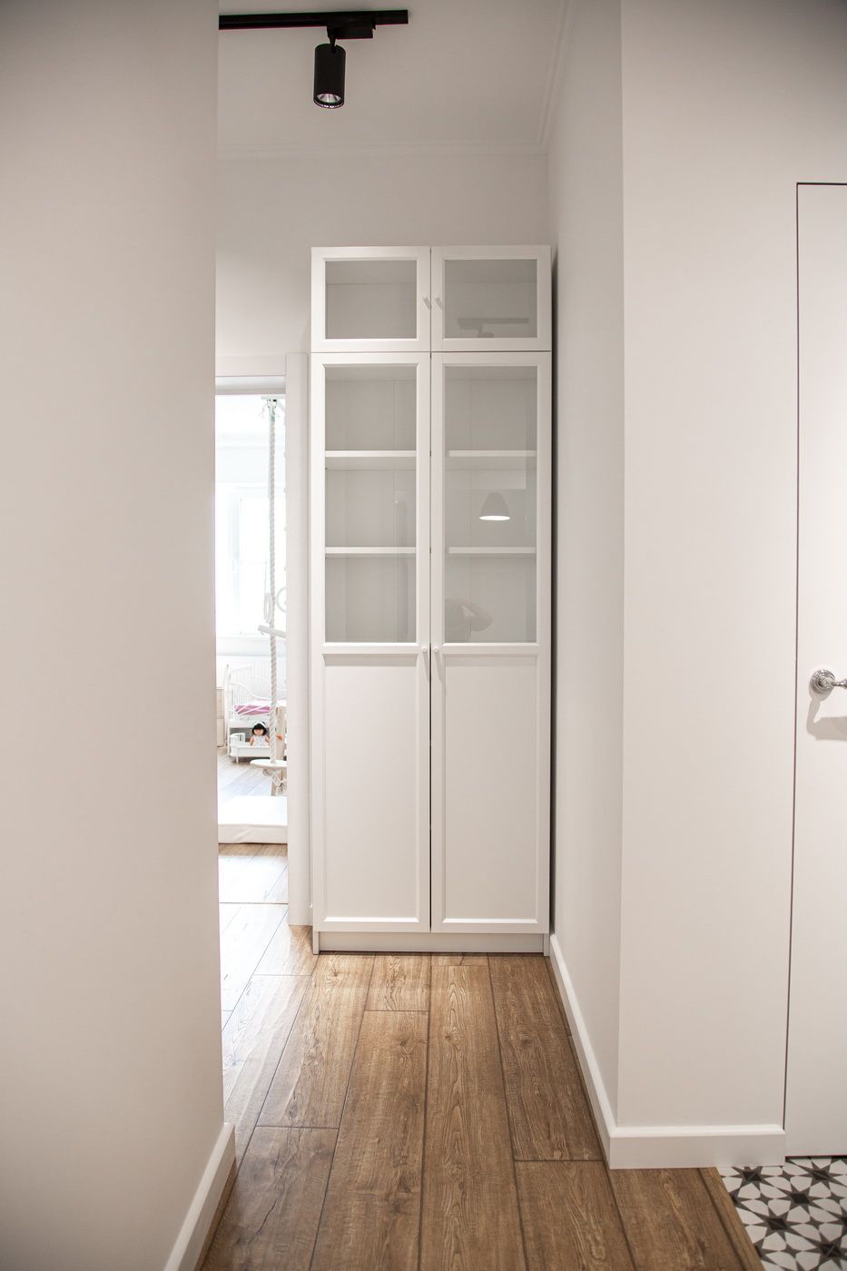 Скрытые двери, обилие белого цвета, трековый свет: проект в минимализме для ценителей современных интерьеров.