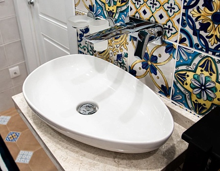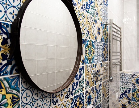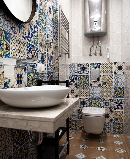 Цветной модернизм, золото и царский кирпич: необычный ремонт в стиле эклектика по нашему дизайн-проекту.