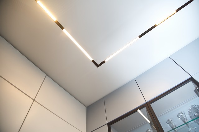 Для освещения выбрали несколько групп света: магнитный шинопровод, светодиодную подсветку, точеные светильники, бра и люстры.
