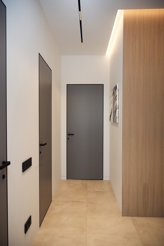 Скрытые двери, обилие белого цвета, трековый свет: проект в минимализме для ценителей современных интерьеров.