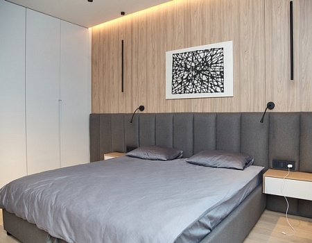 Трубчатые радиаторы, мастер-спальня, антивандальная краска: современная квартира по готовому дизайн-проекту.