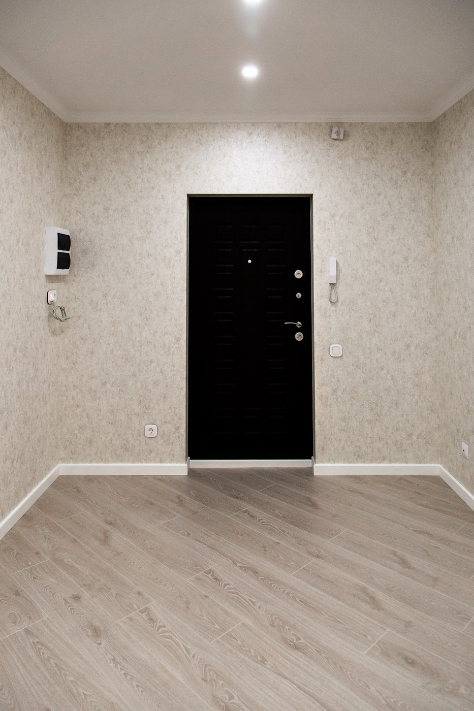 Электрический щит и его наполнение мы оставили от застройщика, но добавили дополнительные группы на водонагреватель и тёплые полы. Провели полную диагностику электрической проводки и откорректировали расположения розеток, светильников и выключателей в соответствии с техническим проектом.
