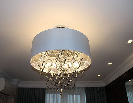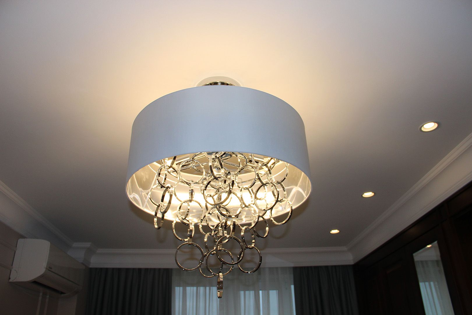 В качестве освещения выбрали две основных группы света: люстры и точечные светильники нескольких видов.