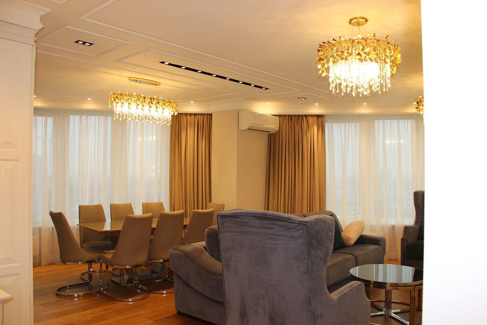 Неоклассический интерьер в огромной квартире — ремонт «под ключ» с гарантией.