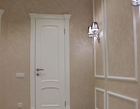 Роскошная квартира в стиле "неоклассика" для молодой девушки. Настенные молдинги, потолочные карнизы, стены под окраску и инженерная доска.