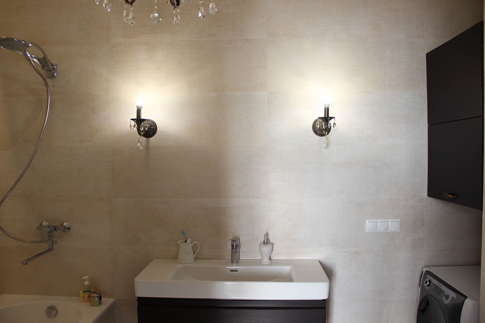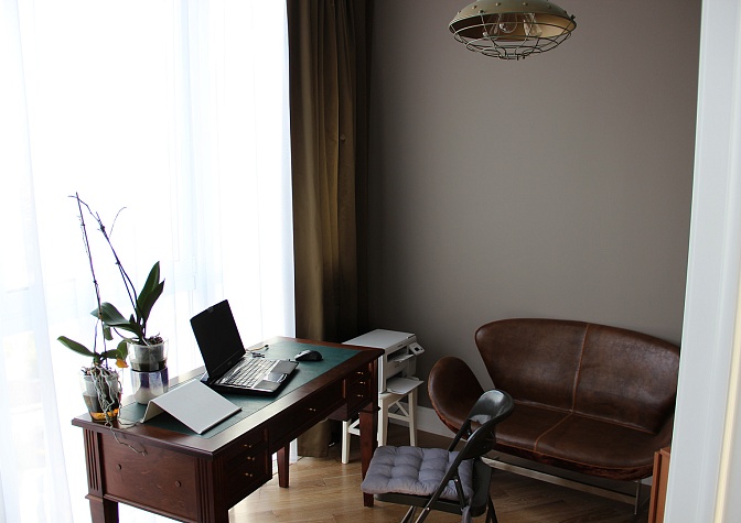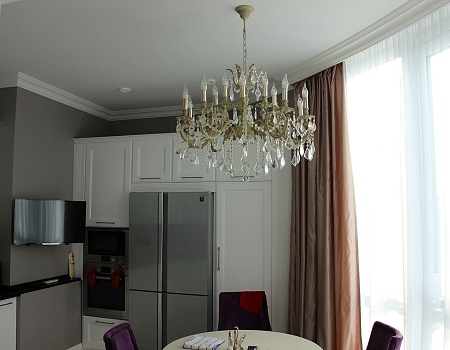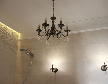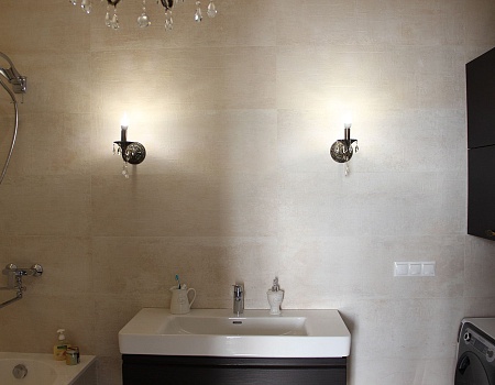 Для отопления выбрали внутрипольные конвекторы, вертикальные и классические трубчатые радиаторы. Отдельного внимание заслуживают необычные осветительные приборы: точечные светильники, бра, люстры с розетками, светодиодная подсветка.