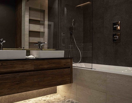 Невероятно уютная и стильная квартира в современном стиле. Встроенное трековое освещение, крупноформатный керамогранит, просторная душевая и многое другое.