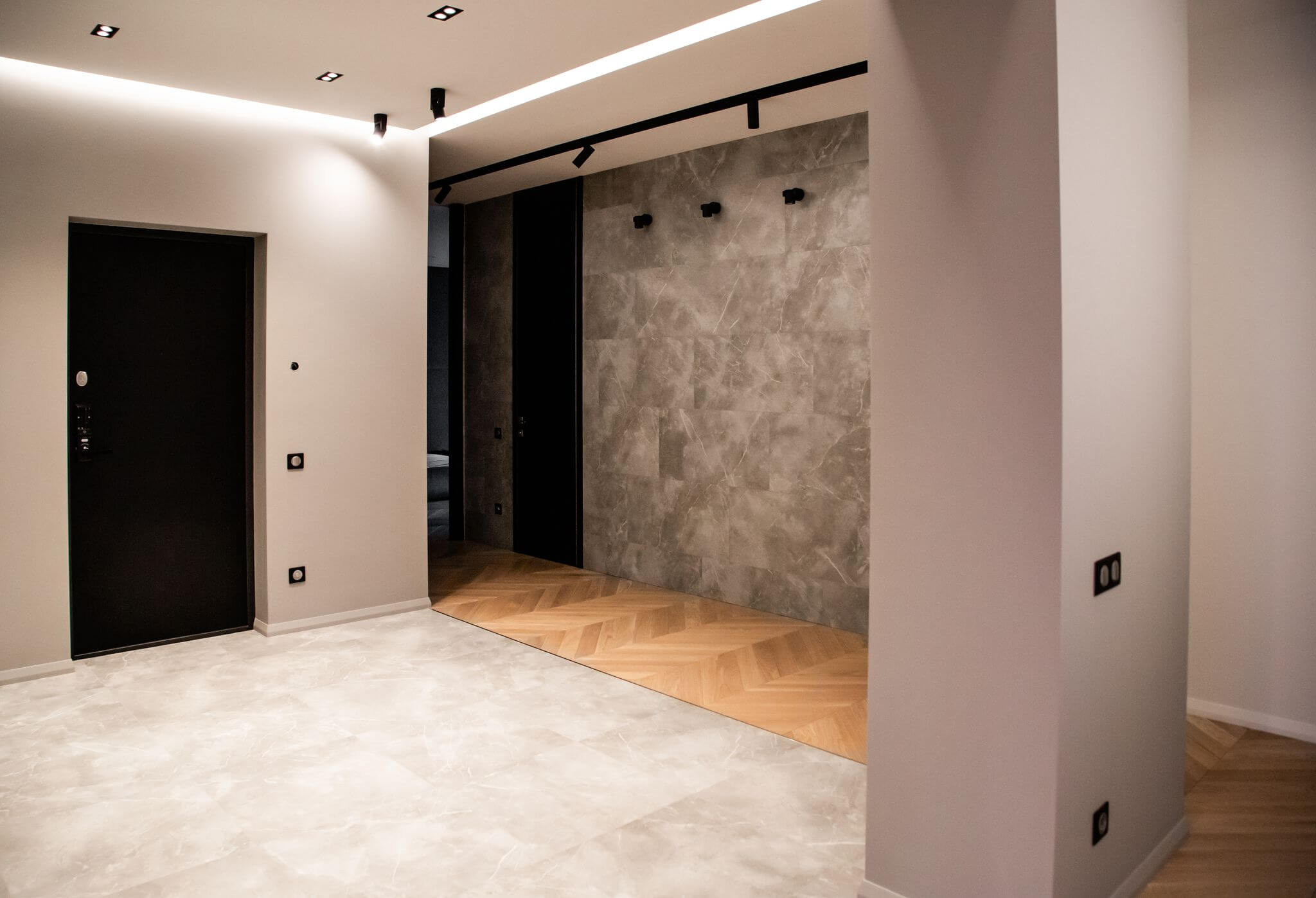 Мрамор, гипсовые панели, декоративная штукатурка: «нескучный» интерьер в современном стиле.