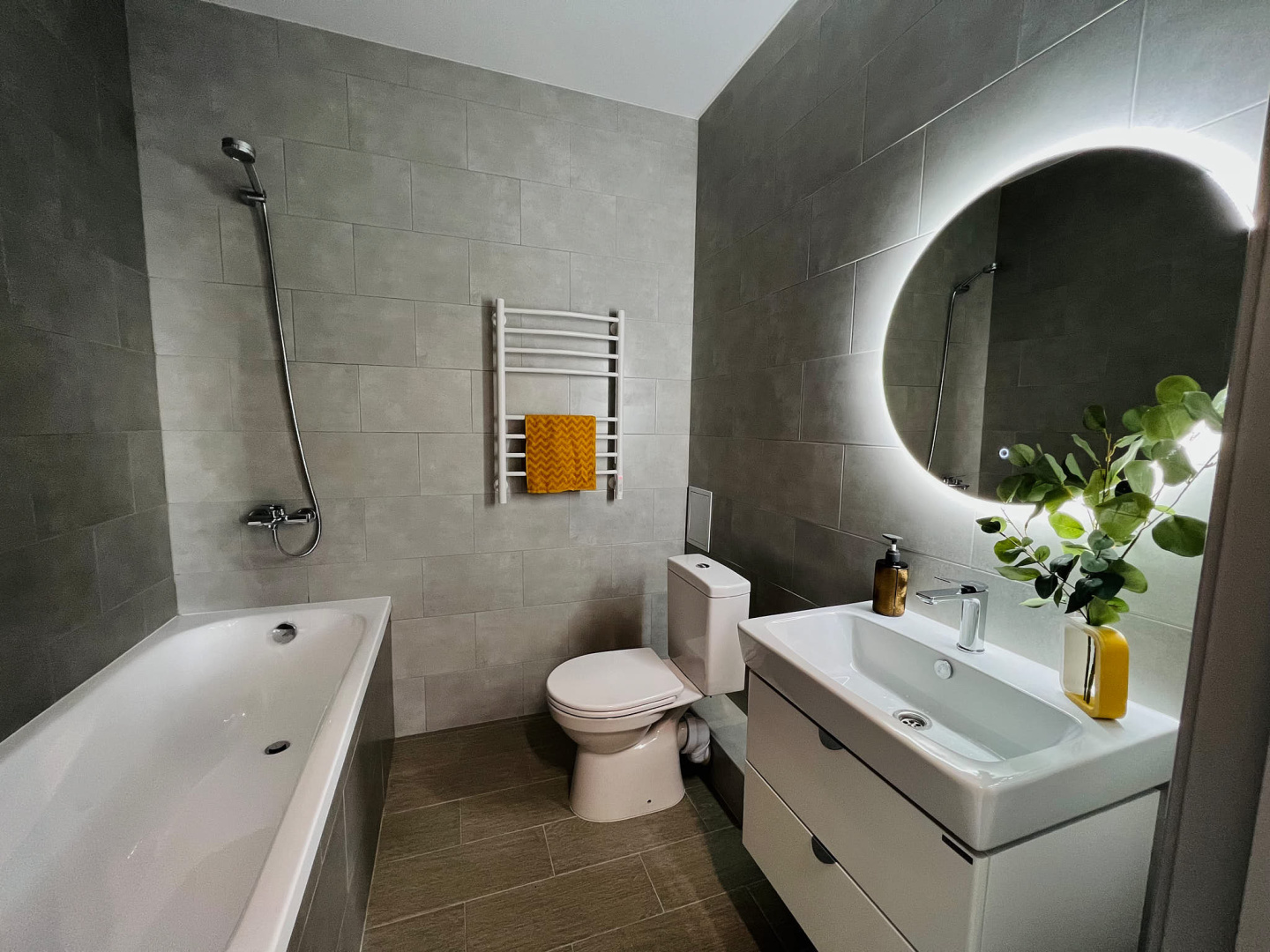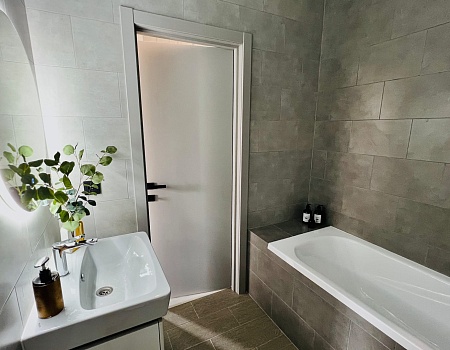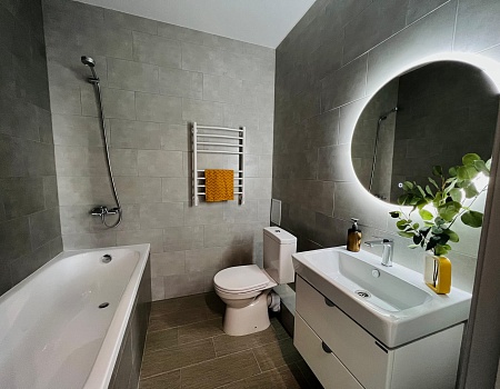 Невероятно уютная и стильная квартира в современном стиле. Встроенное трековое освещение, крупноформатный керамогранит, просторная душевая и многое другое.