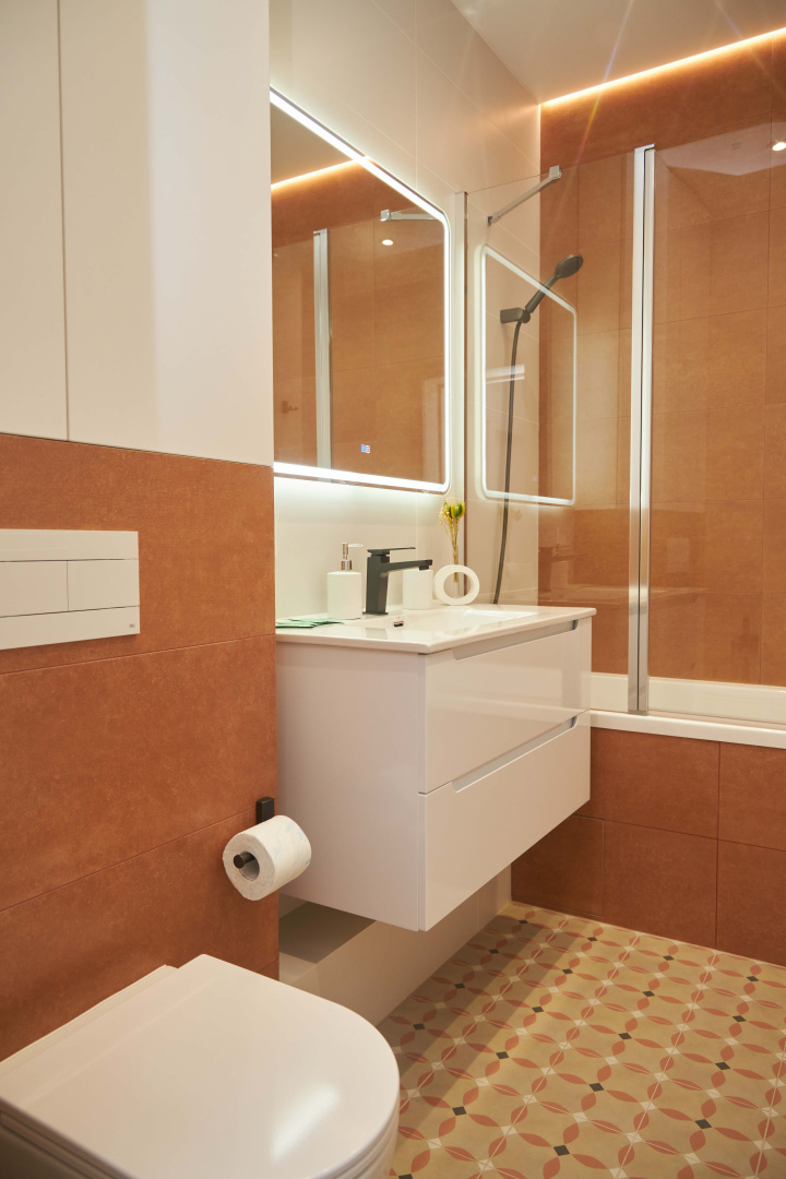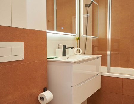 Невероятно уютная и стильная квартира в современном стиле. Встроенное трековое освещение, крупноформатный керамогранит, просторная душевая и многое другое.