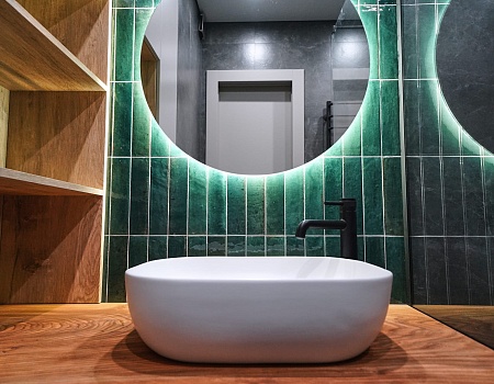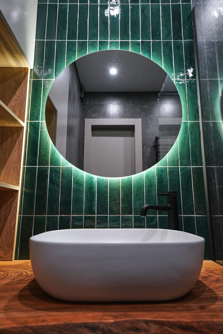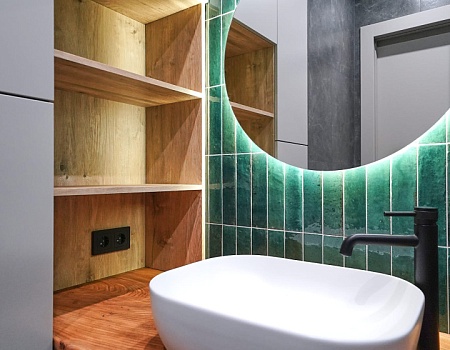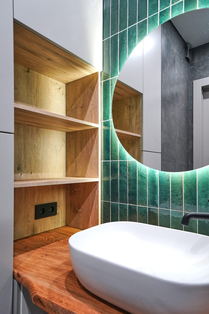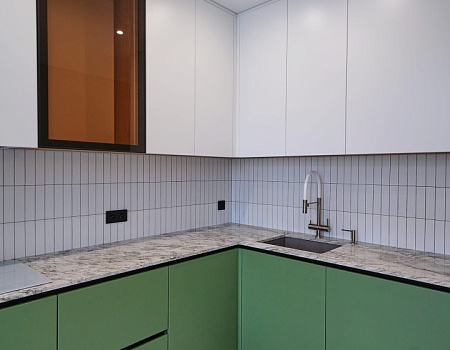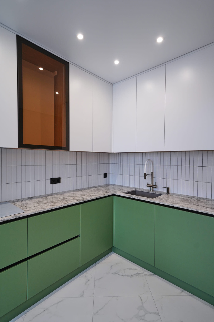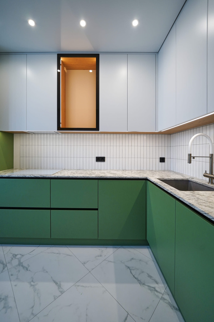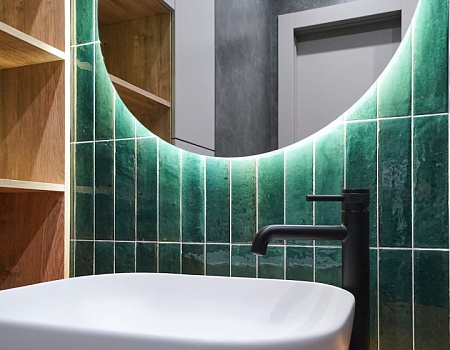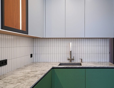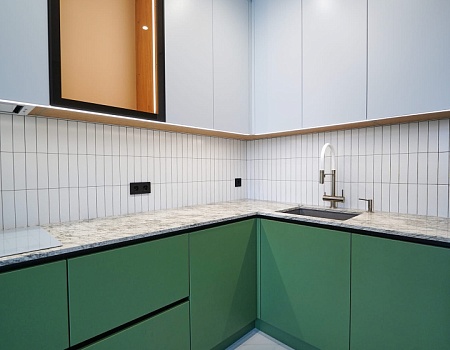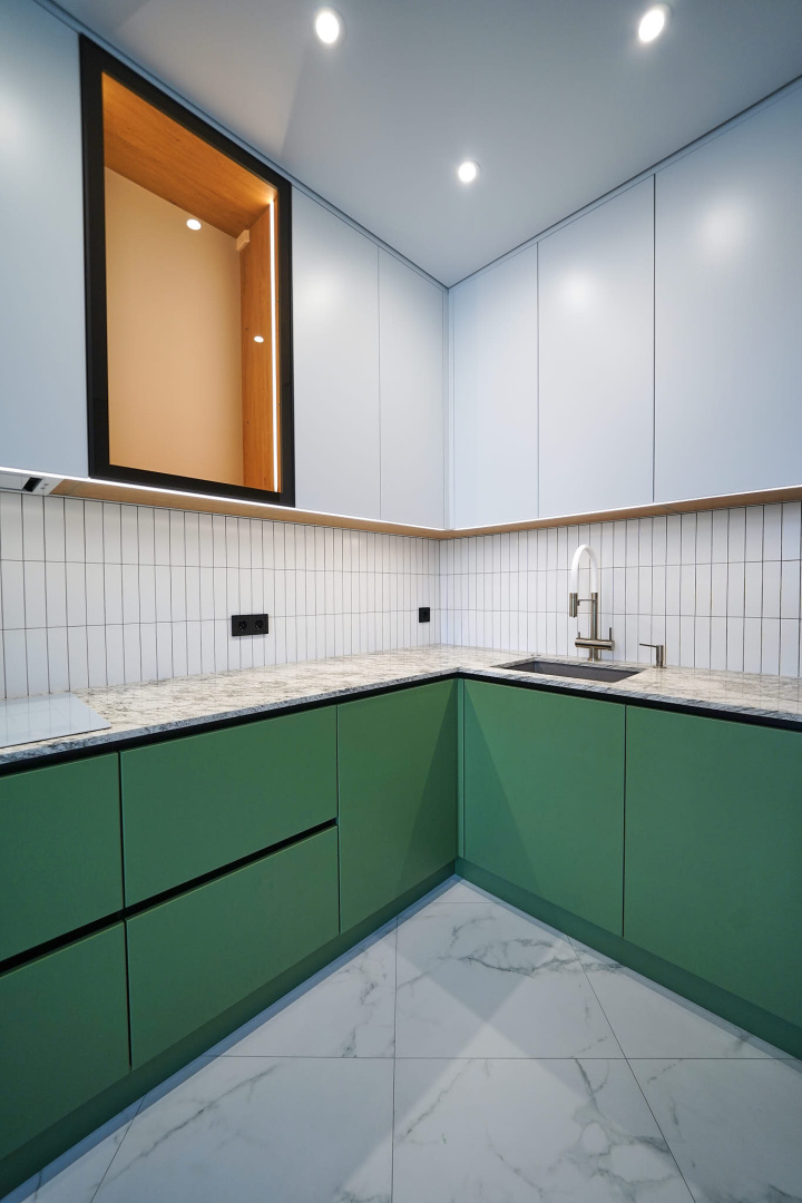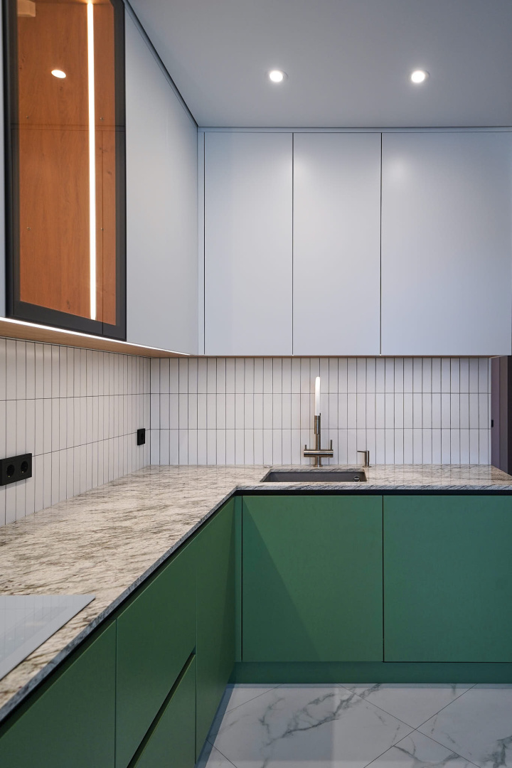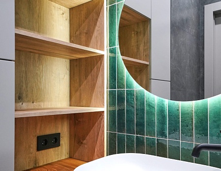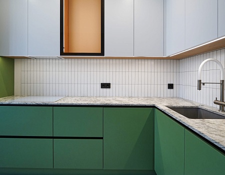 Зеленый и нежно-розовый — цвета, которые стали вдохновением для интерьера квартиры в современном стиле.