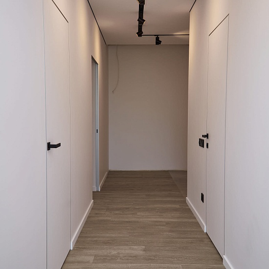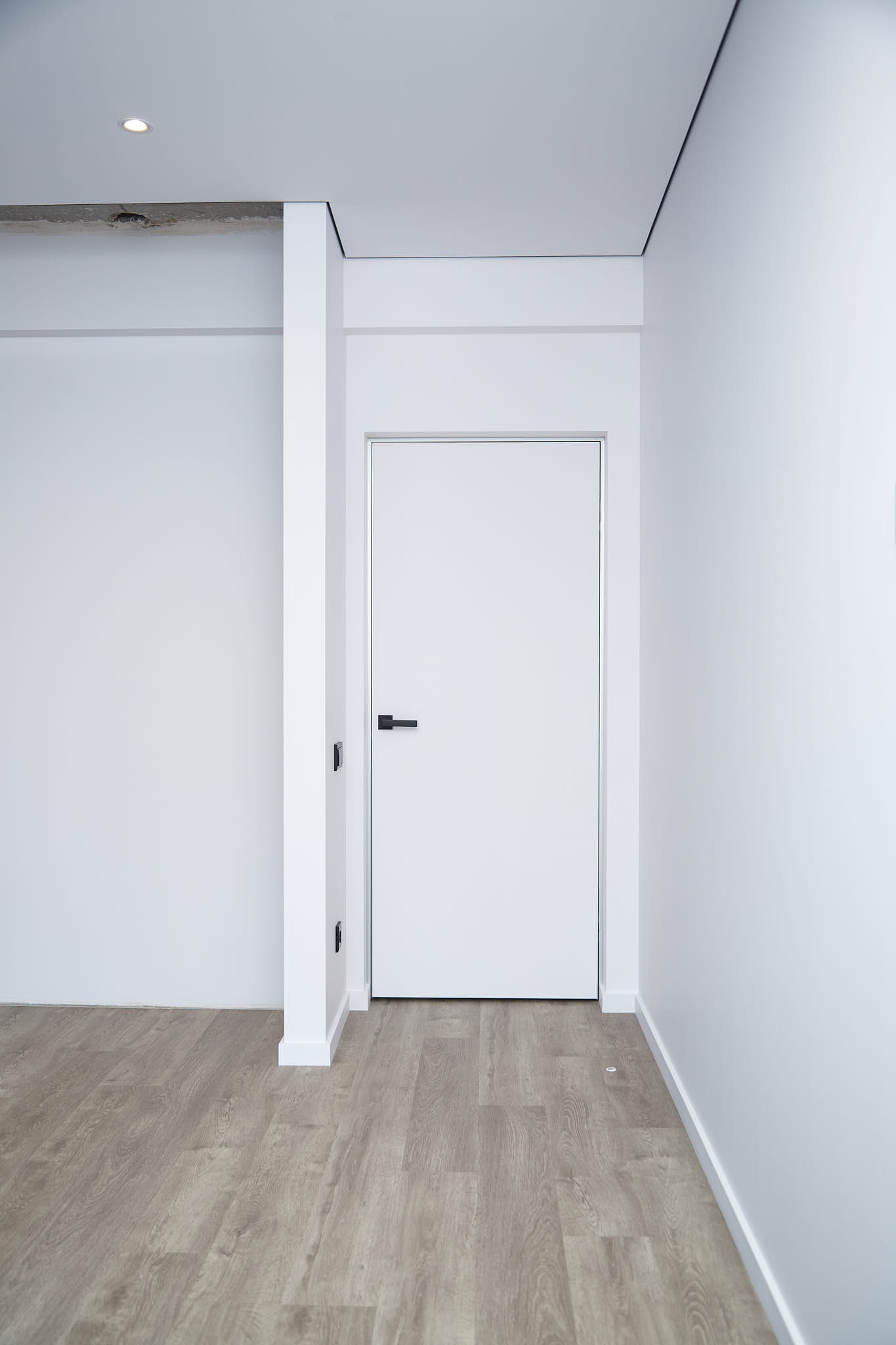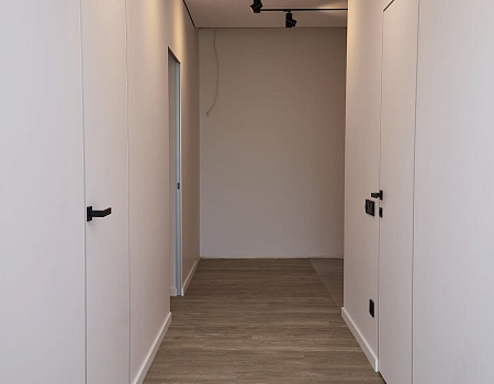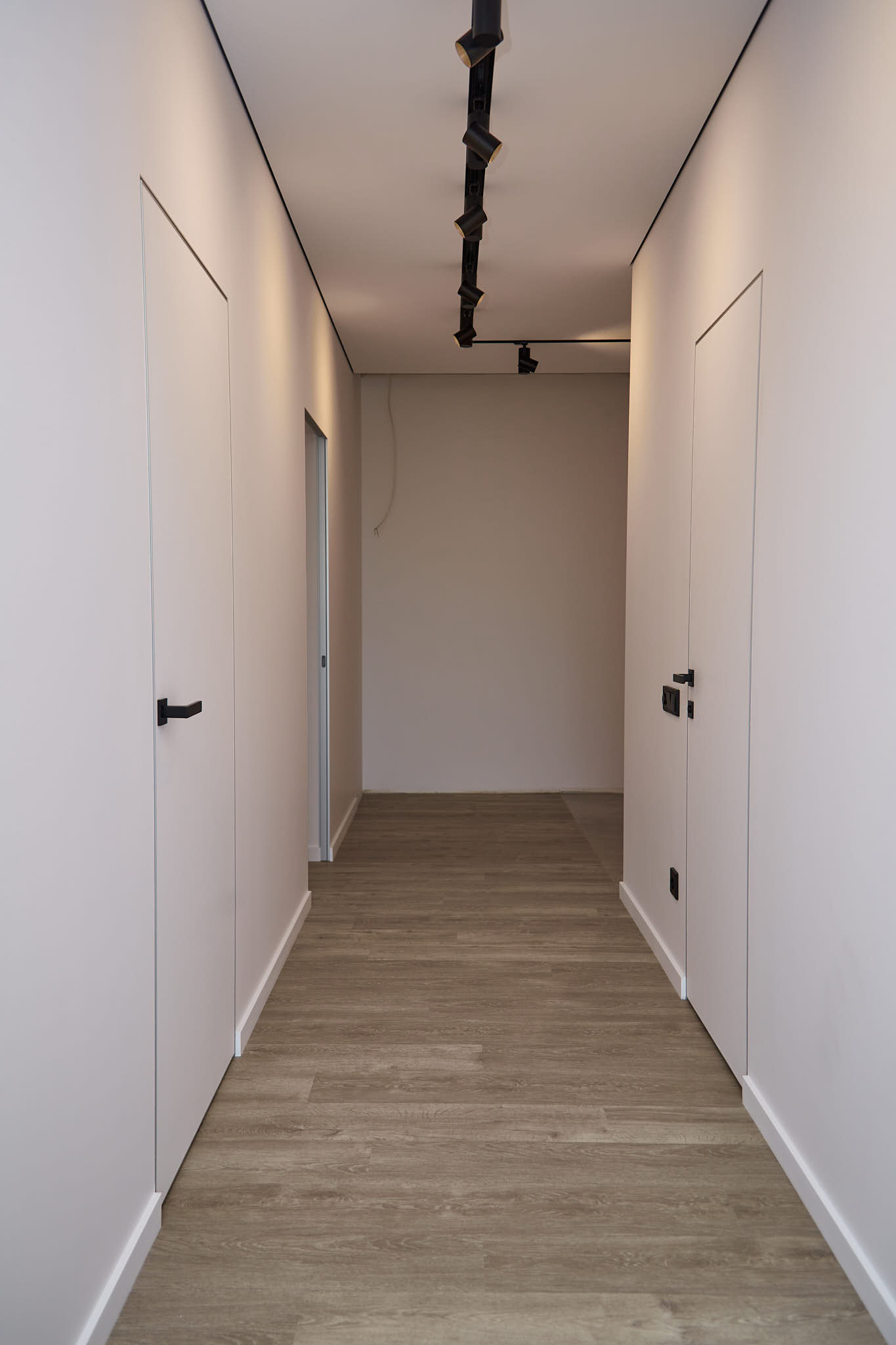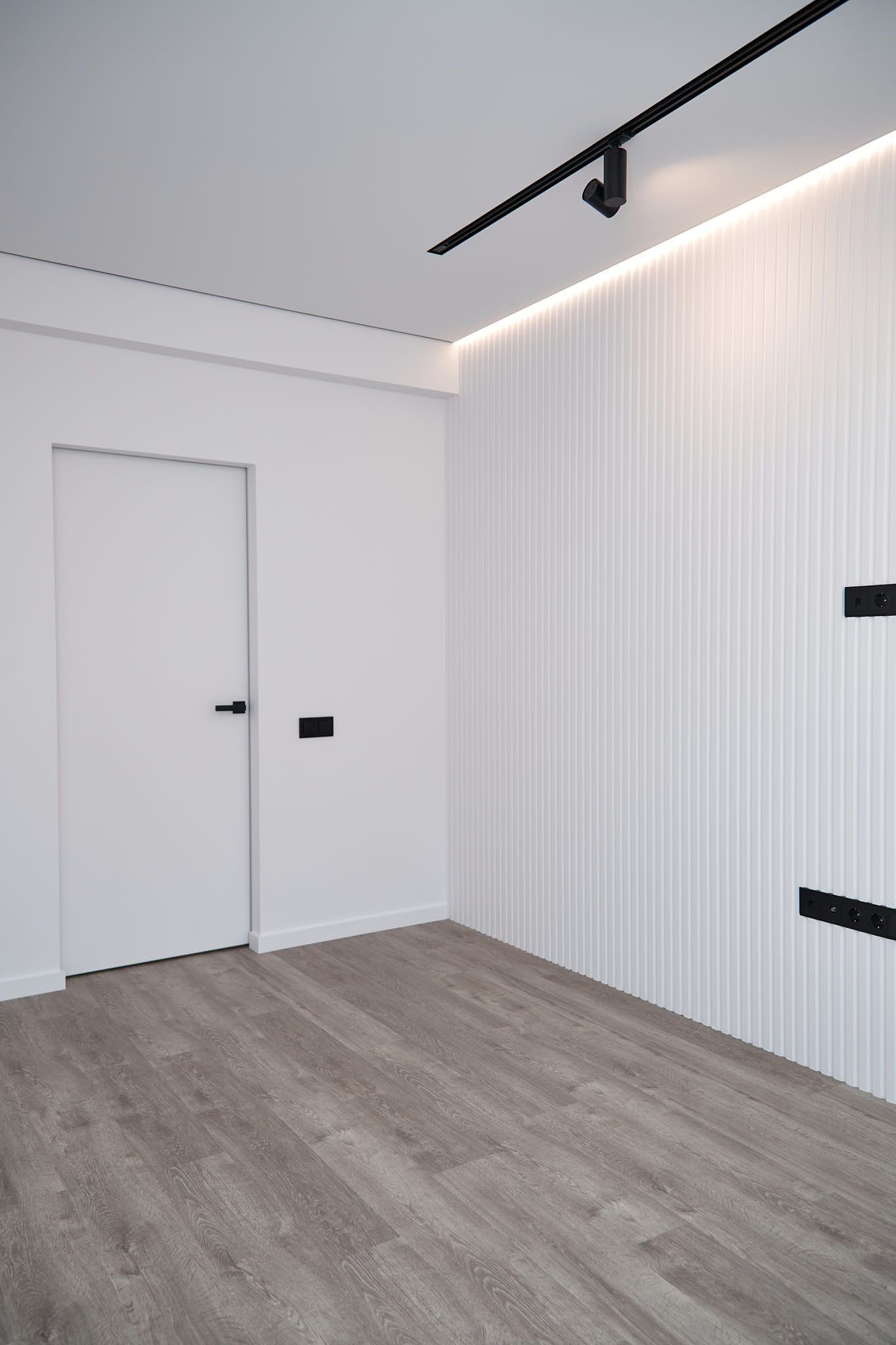 Скрытые двери, обилие белого цвета, трековый свет: проект в минимализме для ценителей современных интерьеров.