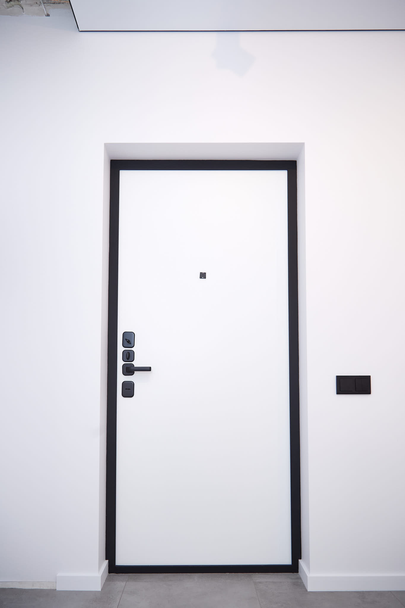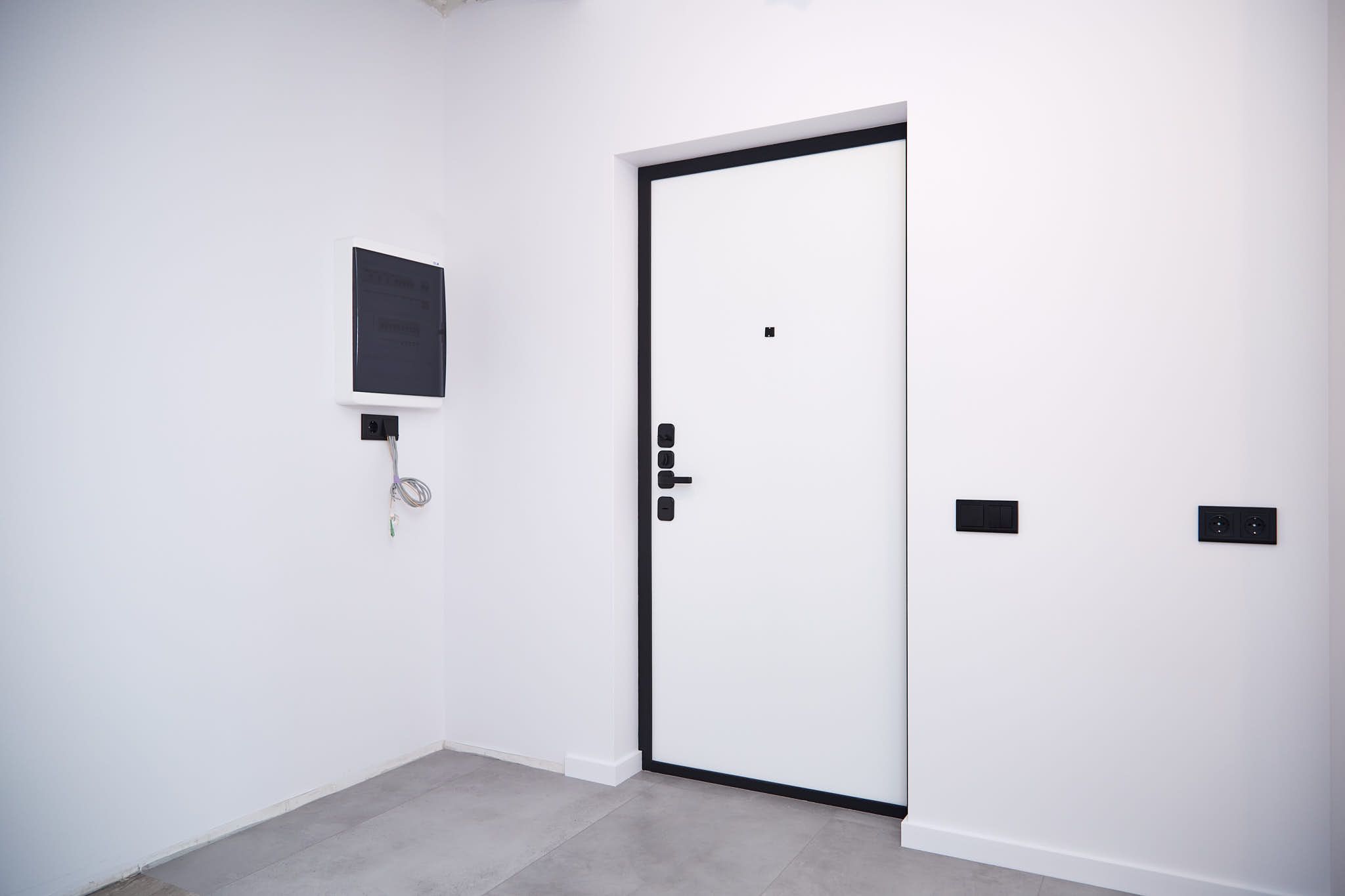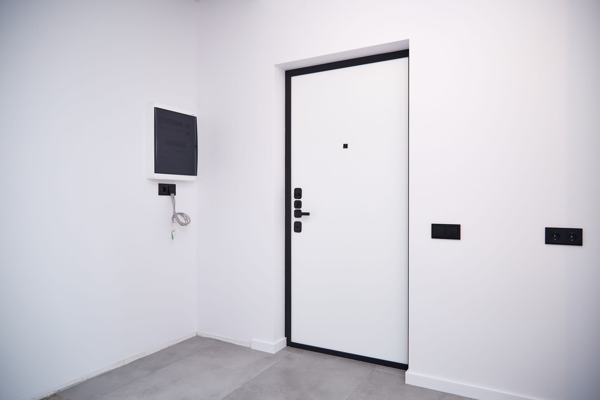 Установили новую входную дверь и межкомнатные двери скрытого монтажа. В шкафу в прихожей расположили электрический щит с автоматами на каждый важный прибор для грамотного распределения нагрузки.