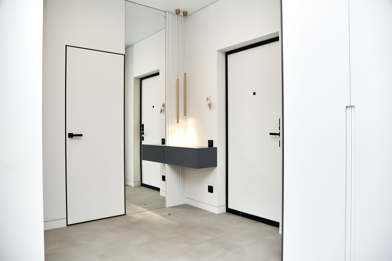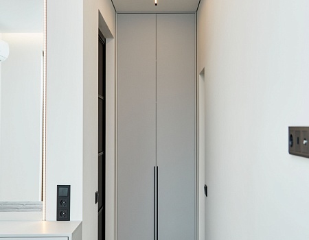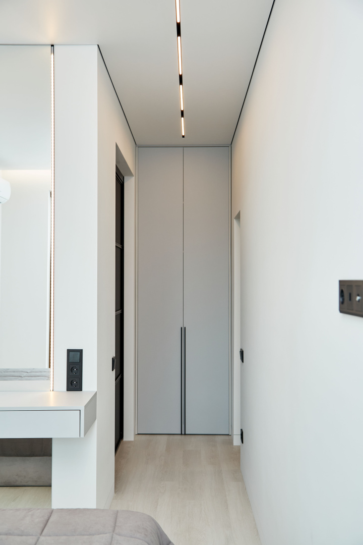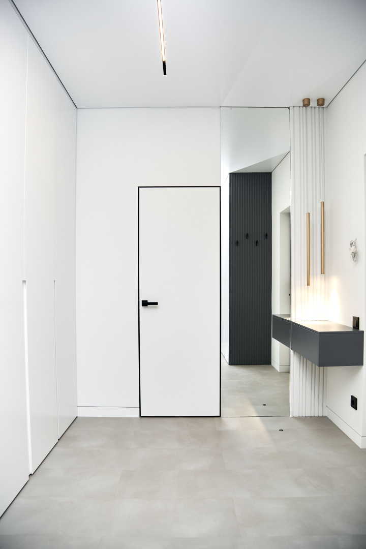 Скрытые двери, обилие белого цвета, трековый свет: проект в минимализме для ценителей современных интерьеров.
