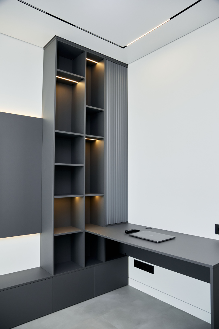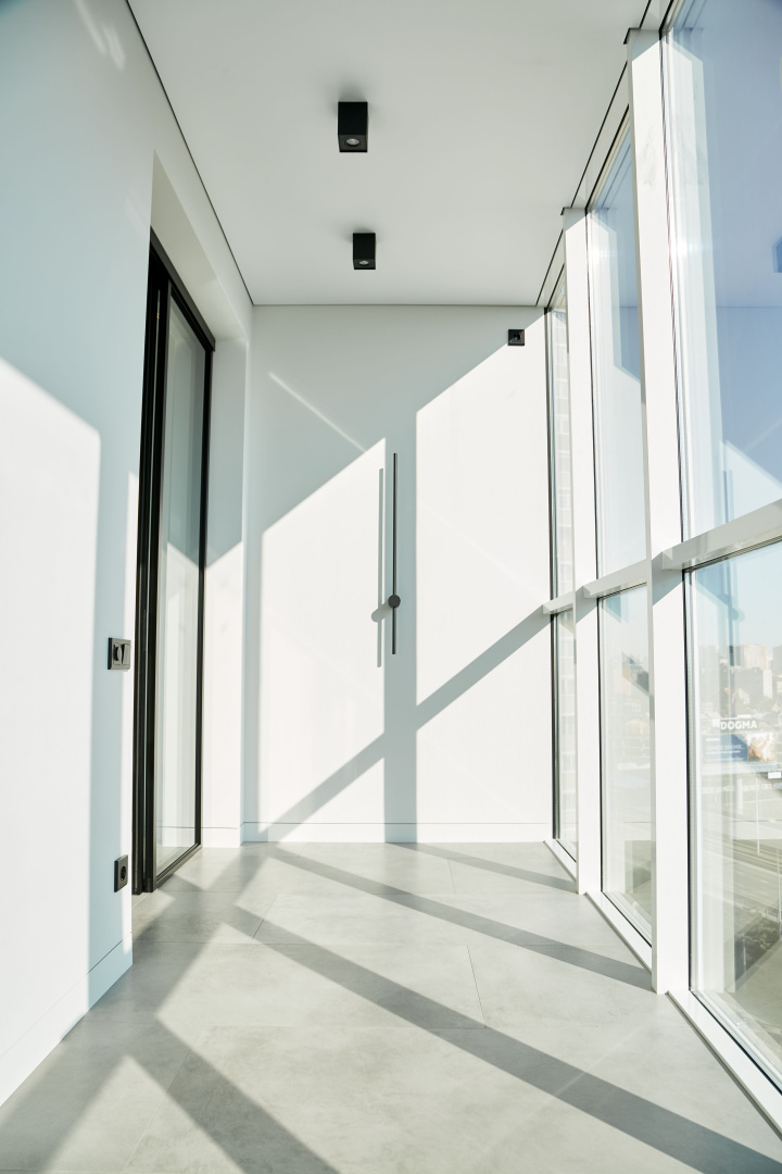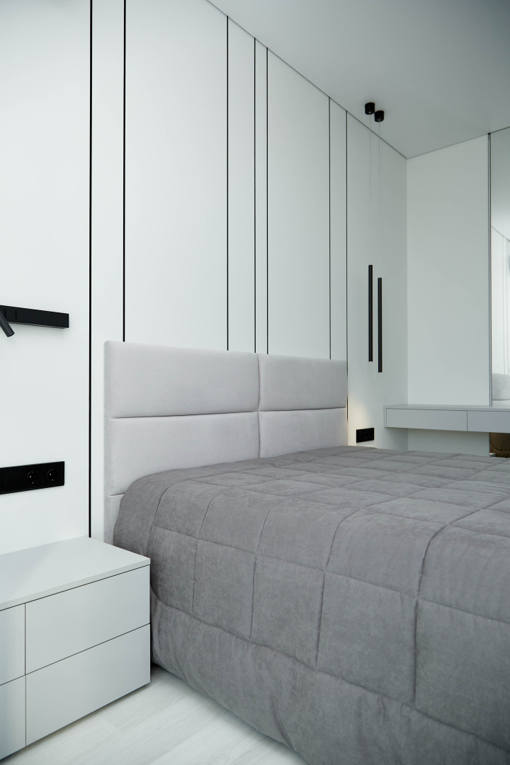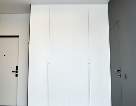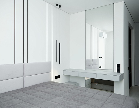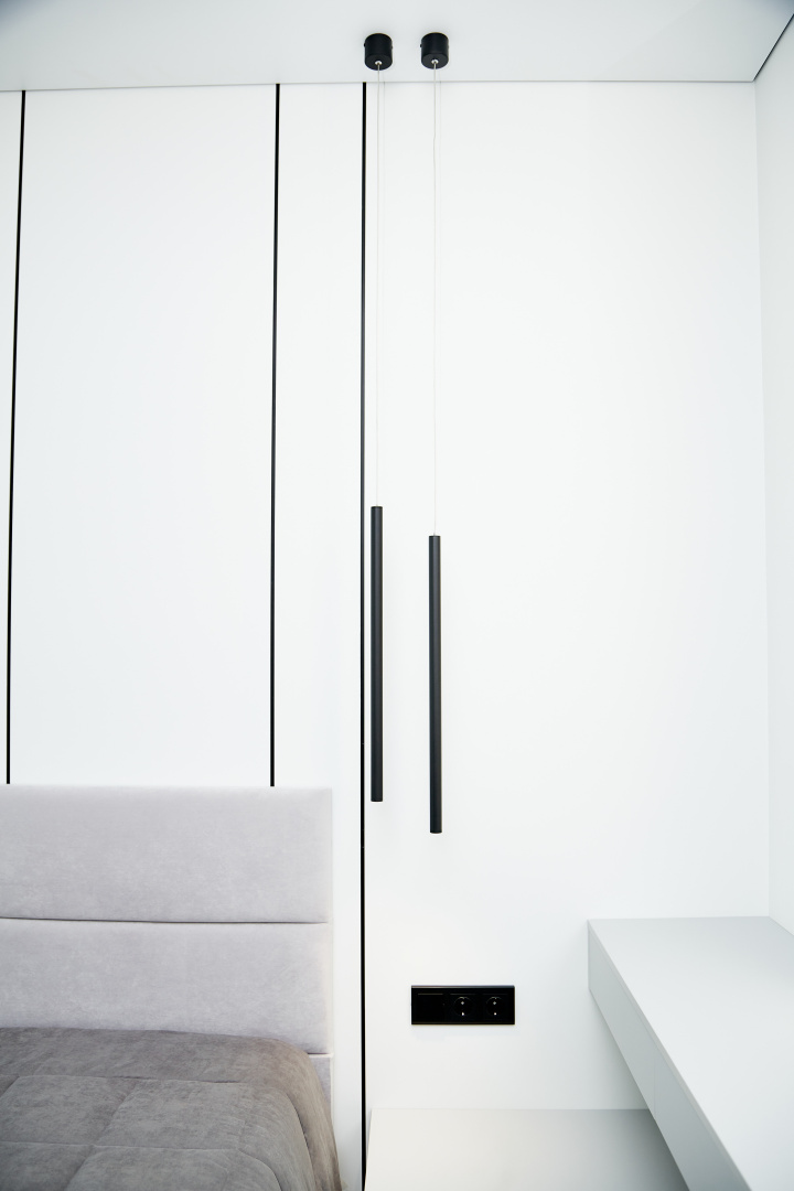 Скрытые двери, обилие белого цвета, трековый свет: проект в минимализме для ценителей современных интерьеров.