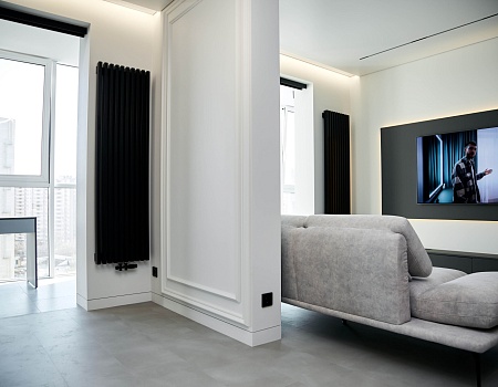 Трубчатые радиаторы, мастер-спальня, антивандальная краска: современная квартира по готовому дизайн-проекту.