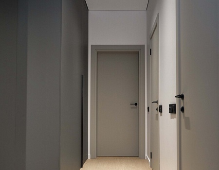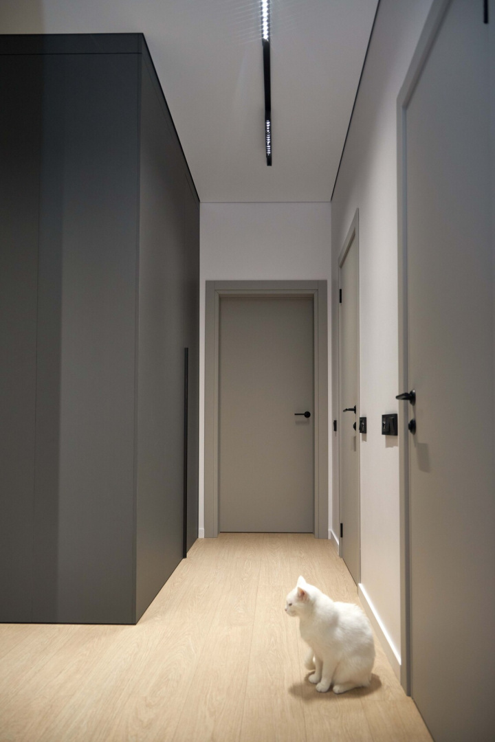 Скрытые двери, обилие белого цвета, трековый свет: проект в минимализме для ценителей современных интерьеров.