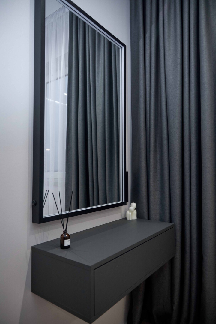 Современный, монохромный интерьер для ценителей минимализма.