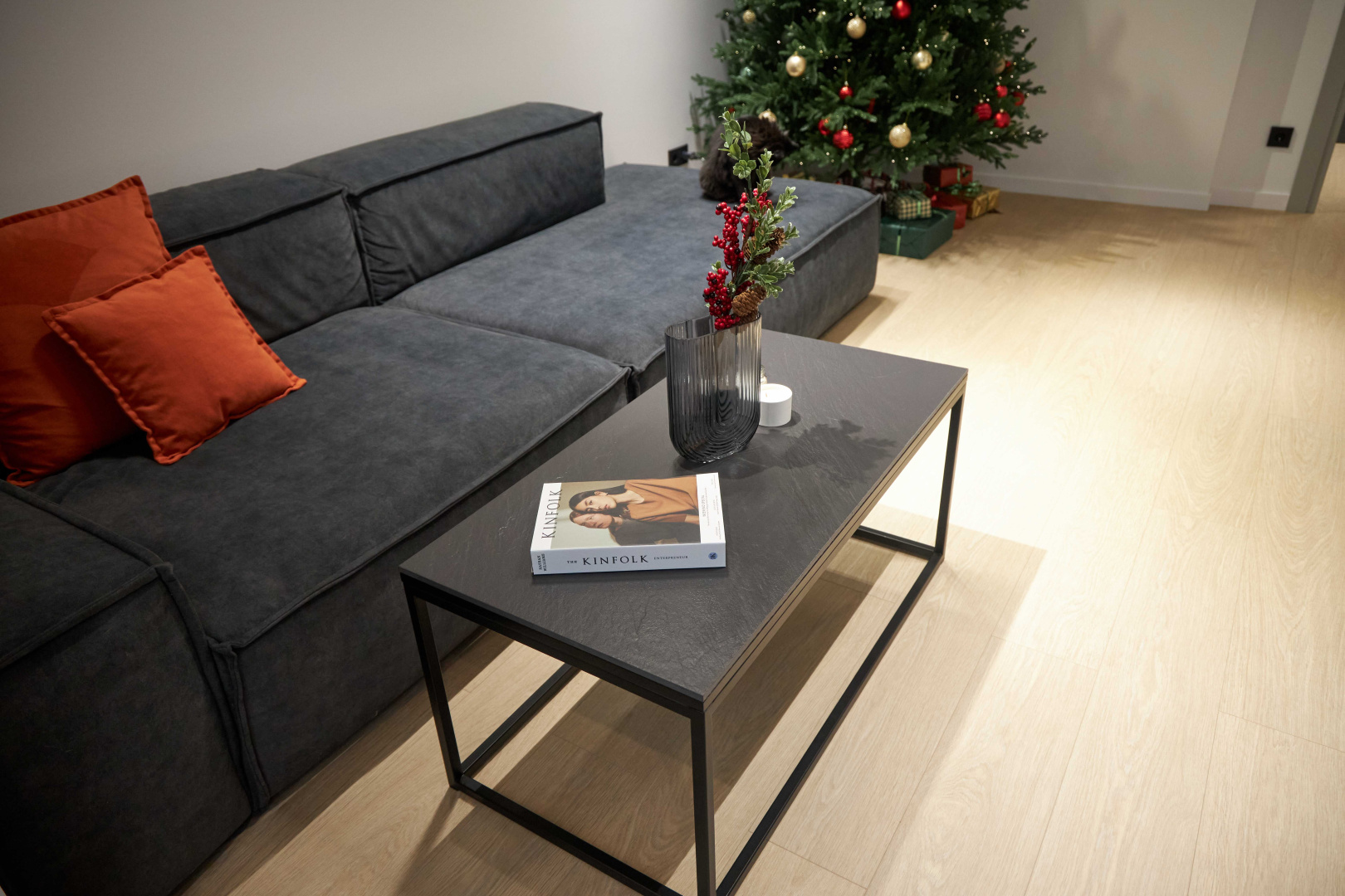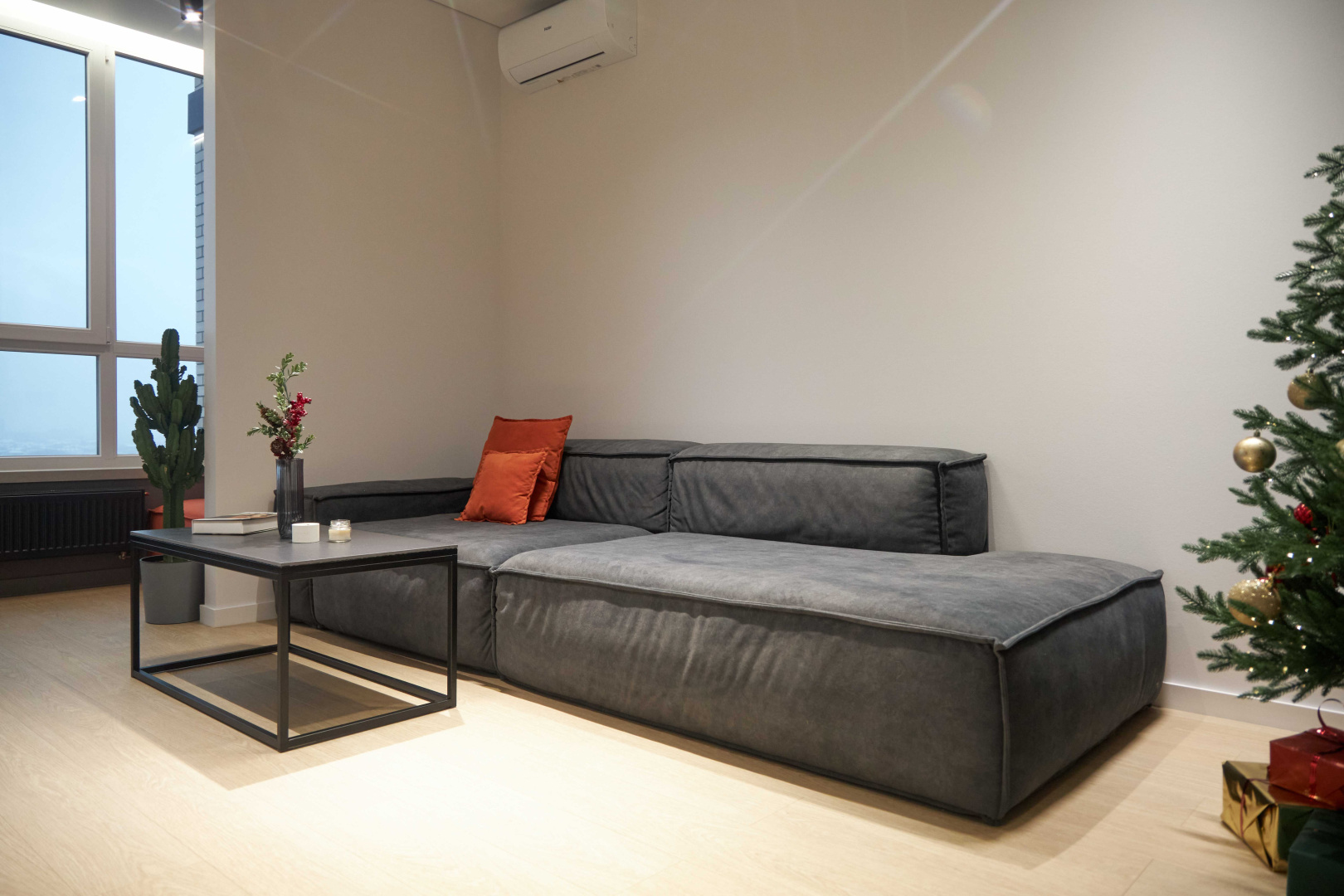 Стильный интерьер с акцентном на натуральность и естественность: оттенки дерева, тёплое освещение, обилие уютного текстиля и природный декор.
