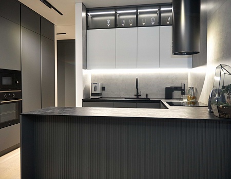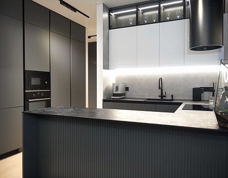 Квартира в современном стиле по нашему дизайн-проекту, основой которой стал черный цвет и все его оттенки.