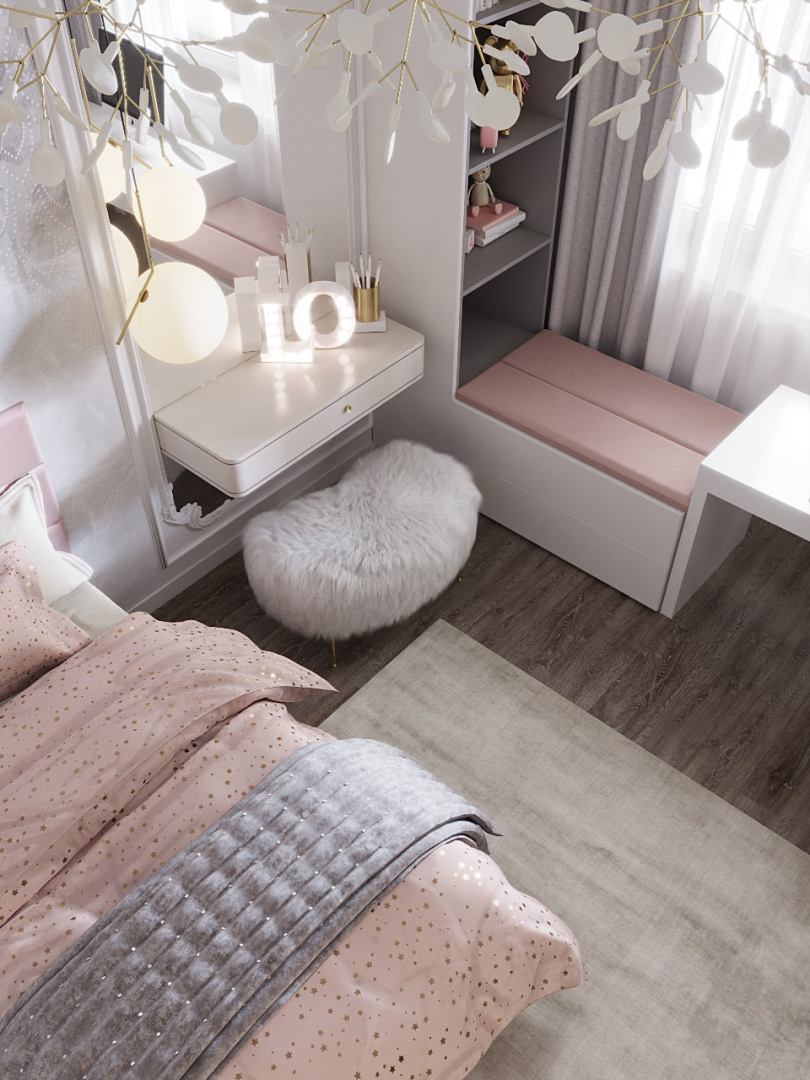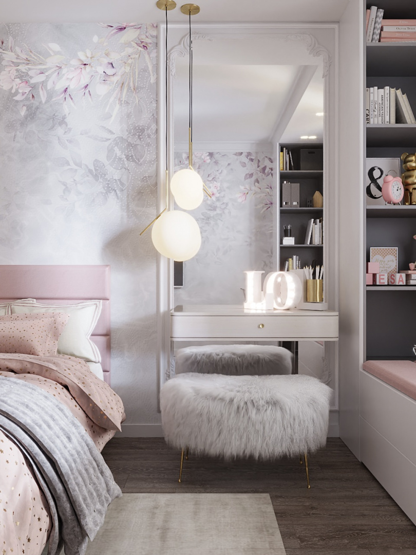 Новое прочтение современной классики. Теплая и уютная квартира для молодой девушки.