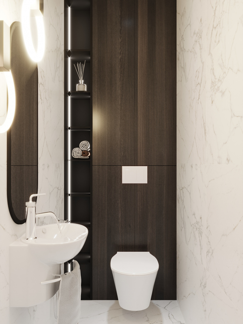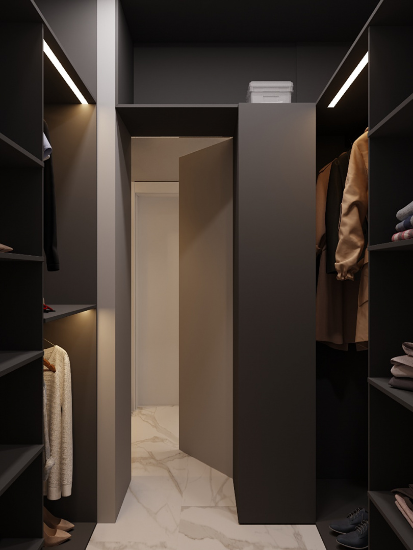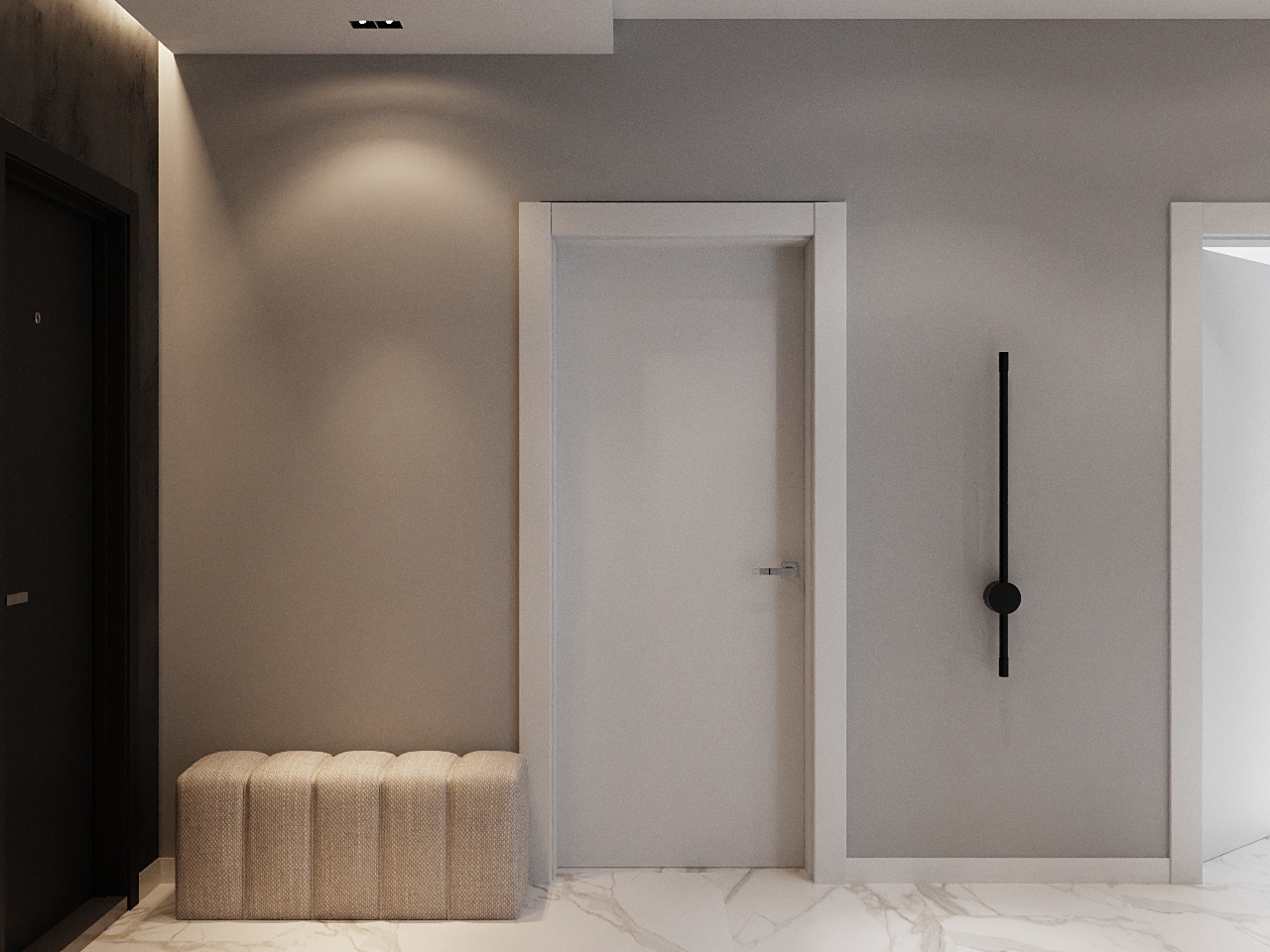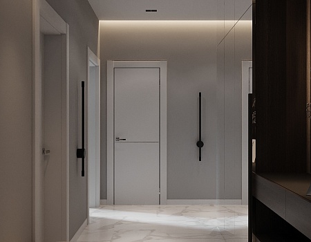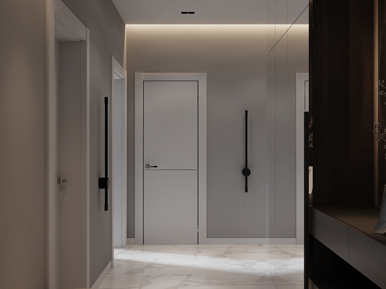 Скрытые двери, обилие белого цвета, трековый свет: проект в минимализме для ценителей современных интерьеров.