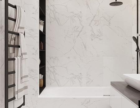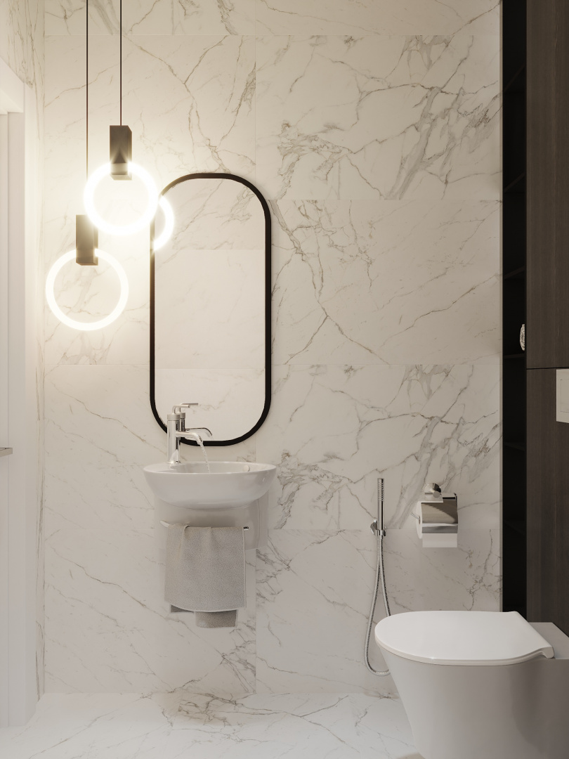 Мрамор, гипсовые панели, декоративная штукатурка: «нескучный» интерьер в современном стиле.
