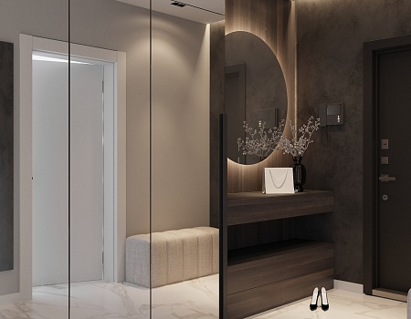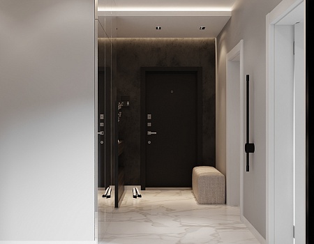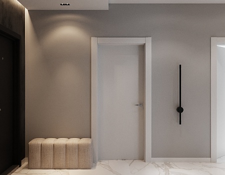 Современный и лаконичный дизайн-проект интерьера для молодой семьи.
