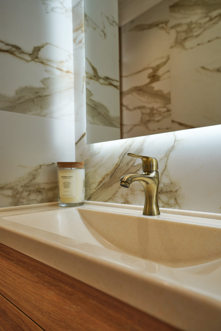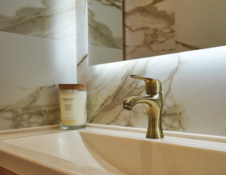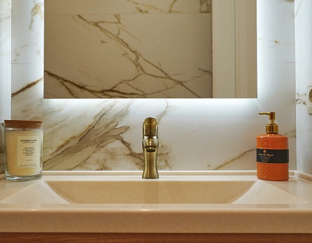 Мрамор, гипсовые панели, декоративная штукатурка: «нескучный» интерьер в современном стиле.