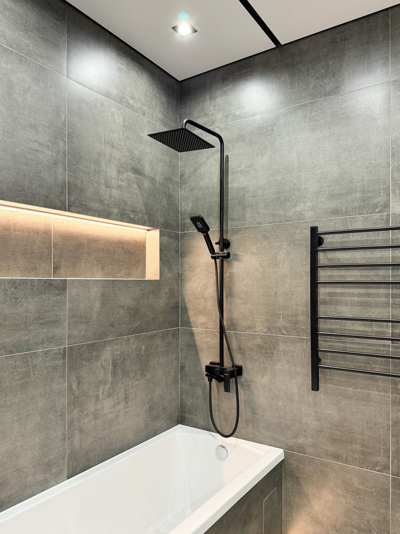 Невероятно уютная и стильная квартира в современном стиле. Встроенное трековое освещение, крупноформатный керамогранит, просторная душевая и многое другое.