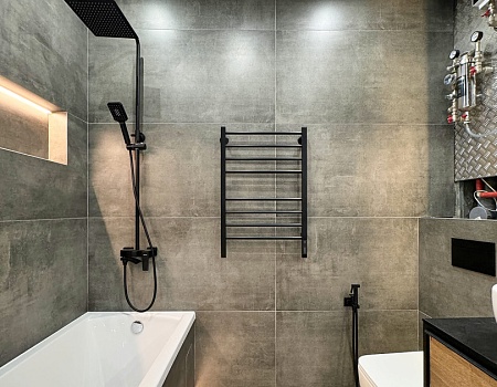 Трубчатые радиаторы, мастер-спальня, антивандальная краска: современная квартира по готовому дизайн-проекту.
