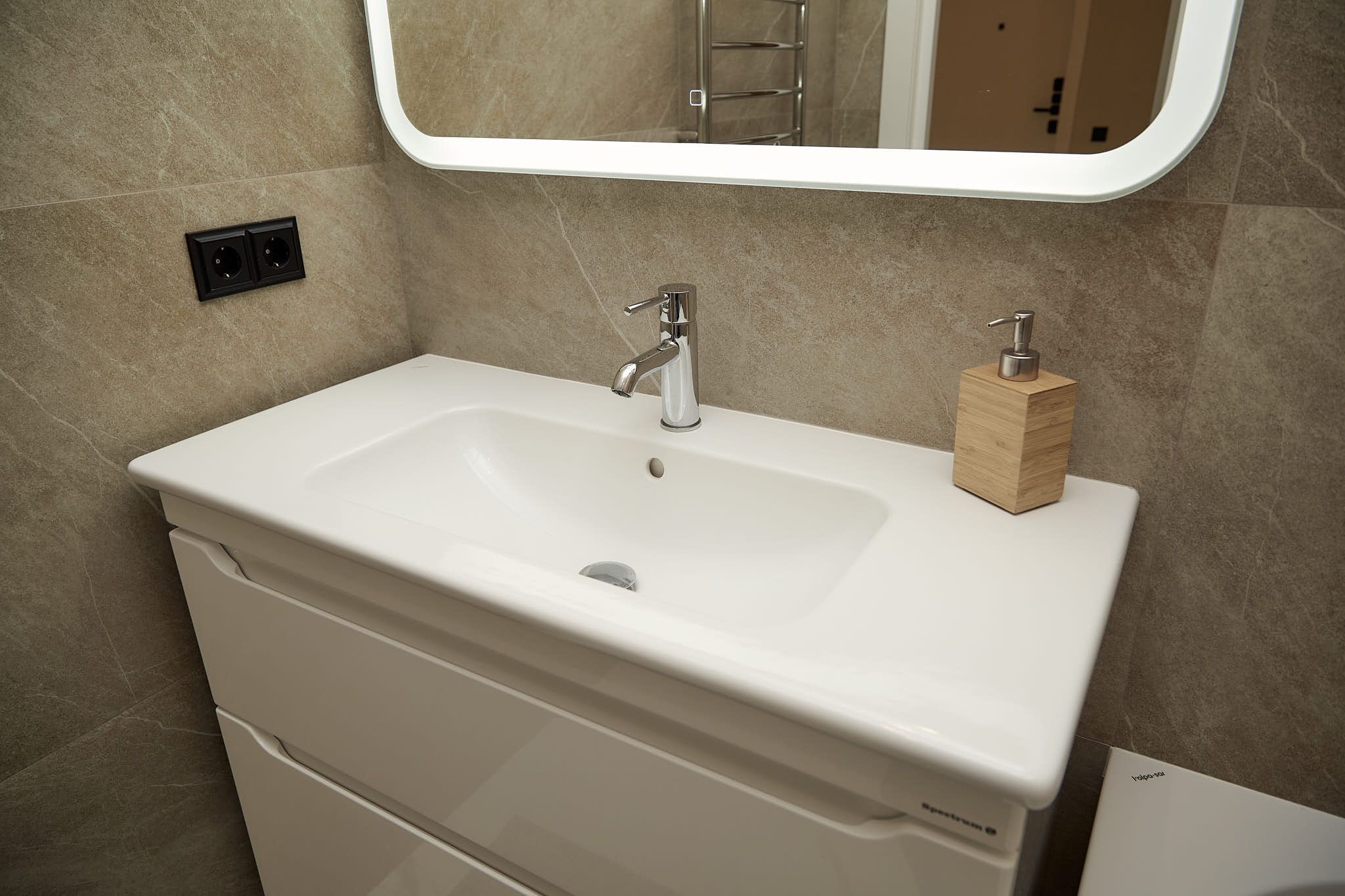 Невероятно уютная и стильная квартира в современном стиле. Встроенное трековое освещение, крупноформатный керамогранит, просторная душевая и многое другое.
