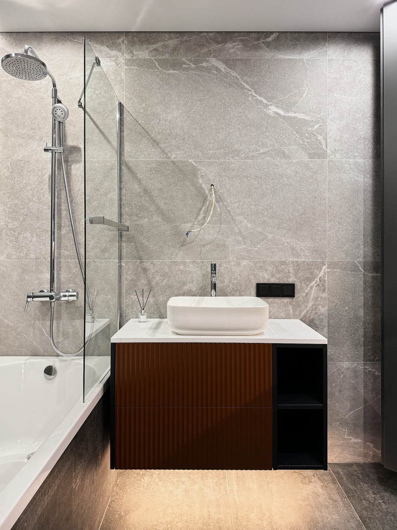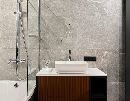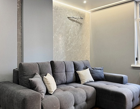 Невероятно уютная и стильная квартира в современном стиле. Встроенное трековое освещение, крупноформатный керамогранит, просторная душевая и многое другое.