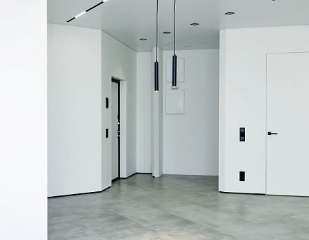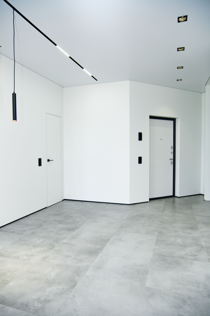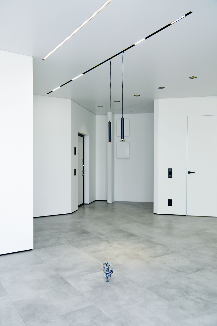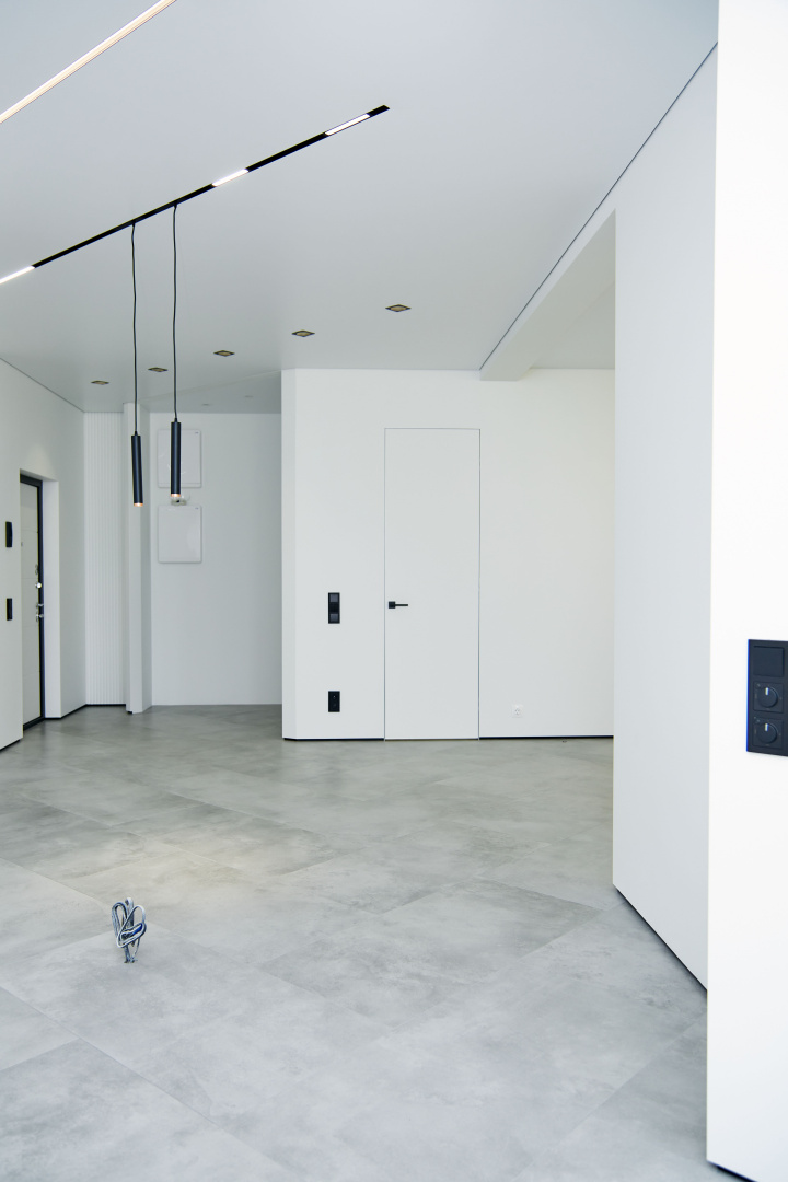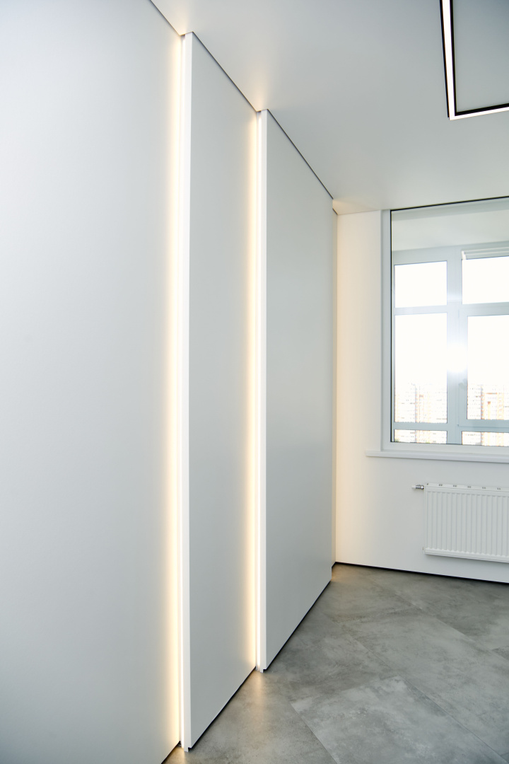Скрытые двери, обилие белого цвета, трековый свет: проект в минимализме для ценителей современных интерьеров.