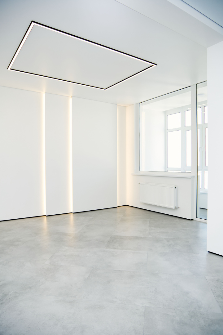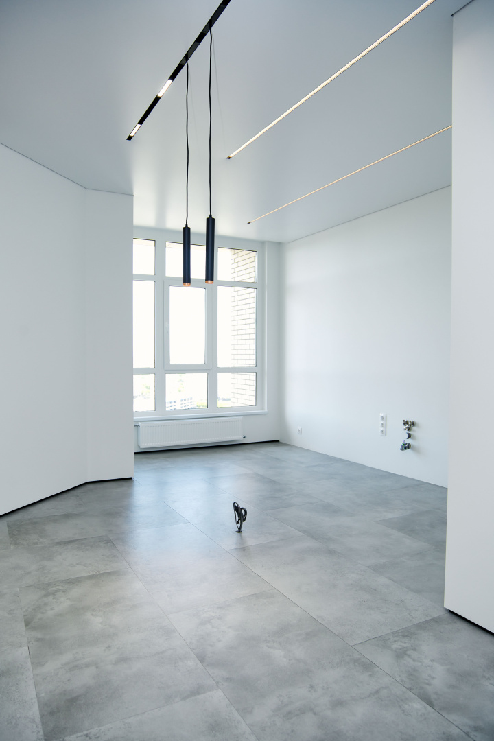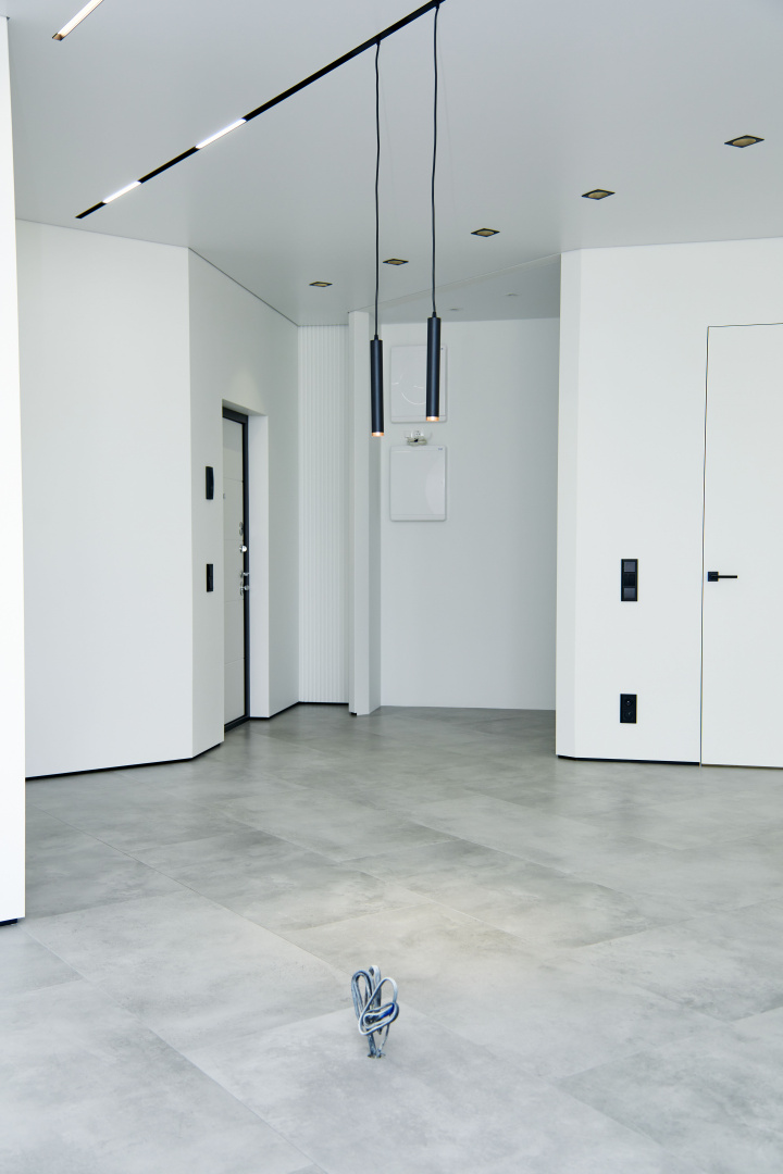 Современный, монохромный интерьер для ценителей минимализма.