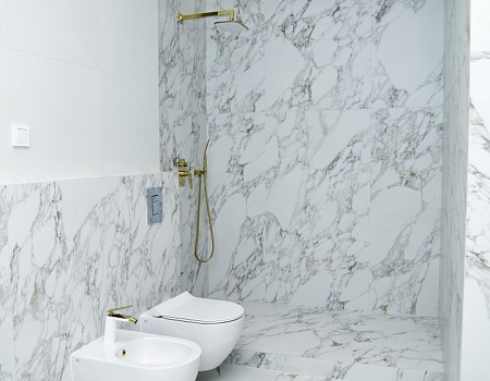 Мрамор, гипсовые панели, декоративная штукатурка: «нескучный» интерьер в современном стиле.