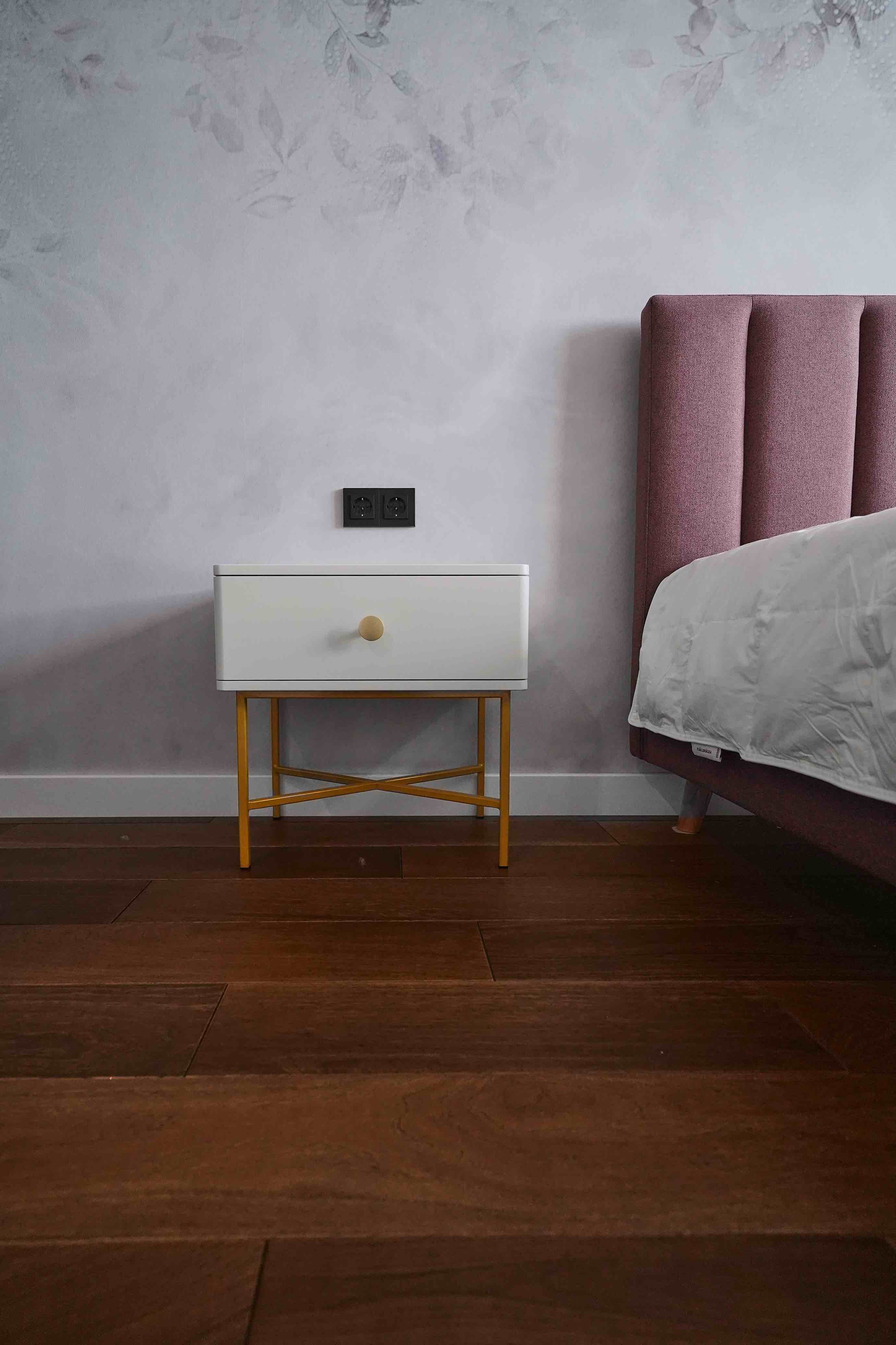Заменили все окна в квартире на новые и качественные. Стены оштукатурили по маякам и окрасили. На пол уложили крупноформатный керамогранит и инженерную доску, а потолок выполнили из гипсокартона.