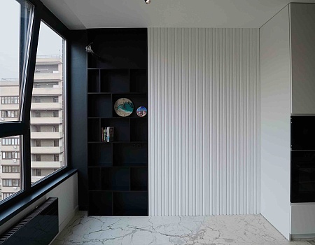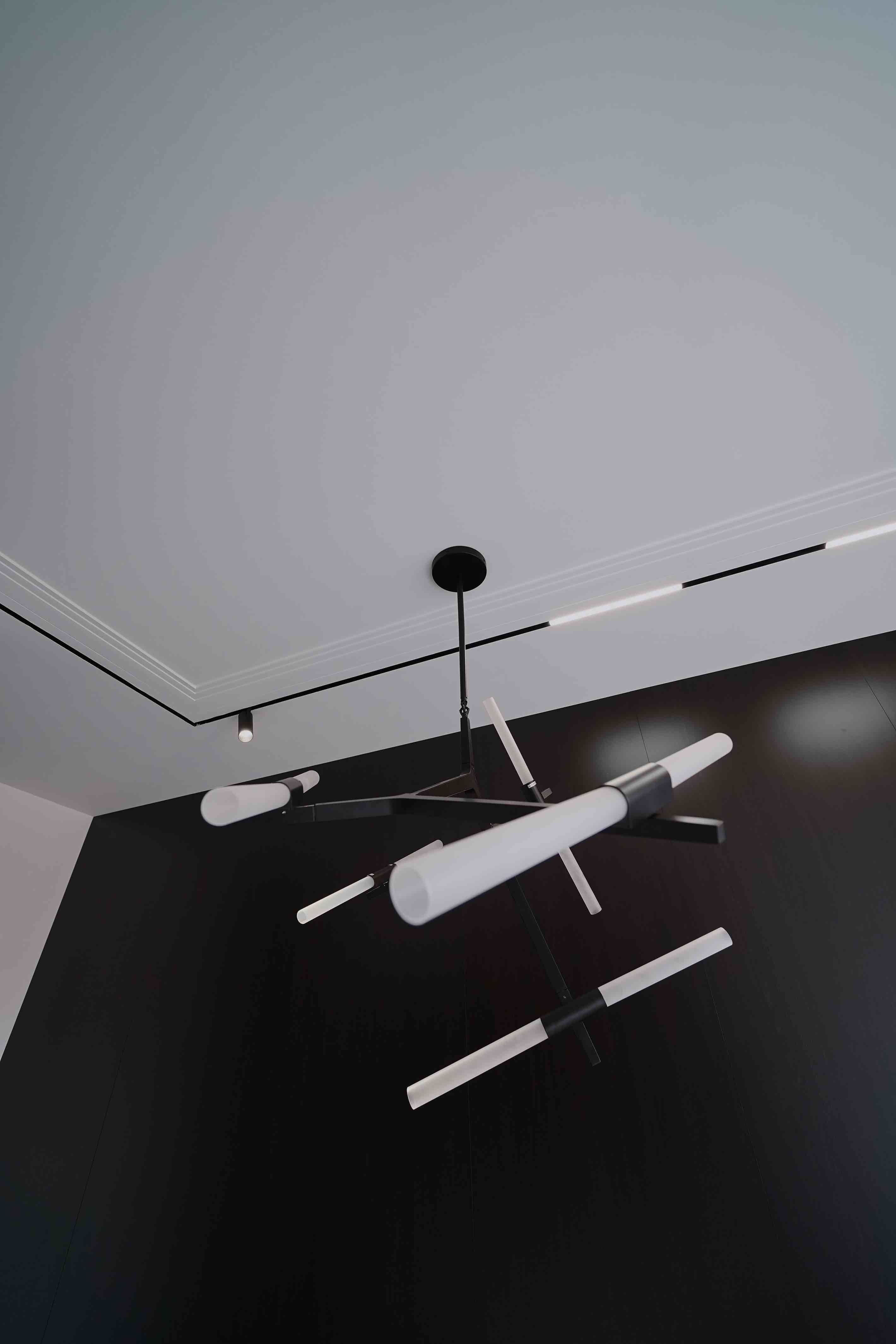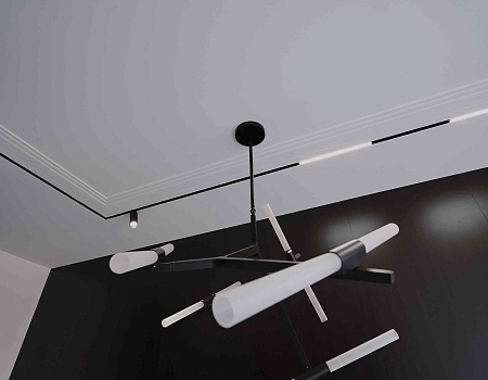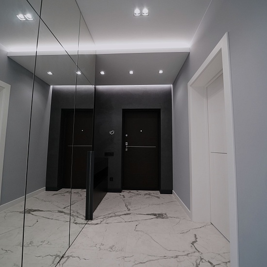 декоративную штукатурку, керамогранит и гипсовые 3D-панели. Для освещения выбрали магнитный шинопровод с трековыми светильниками.