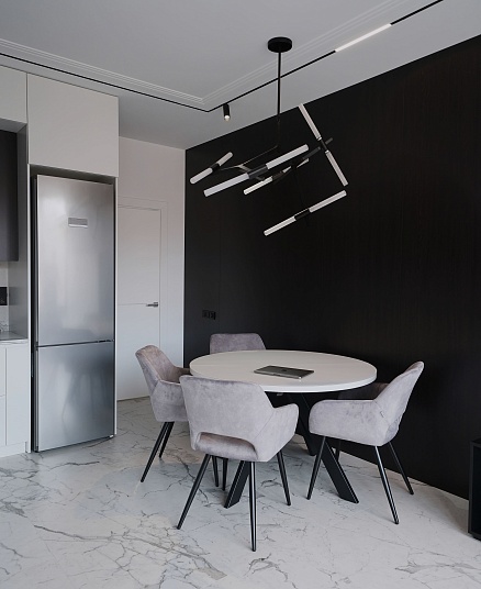 обеденную часть и место для отдыха. В отделке стен использовали МДФ-панели,