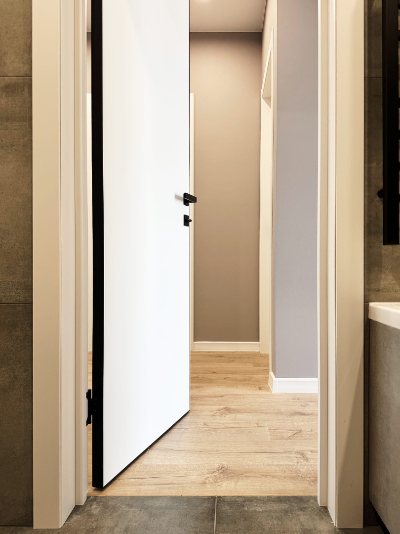 Скрытые двери, обилие белого цвета, трековый свет: проект в минимализме для ценителей современных интерьеров.