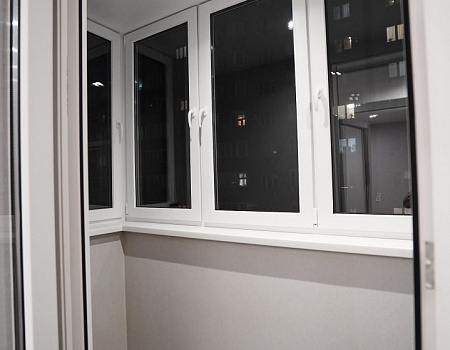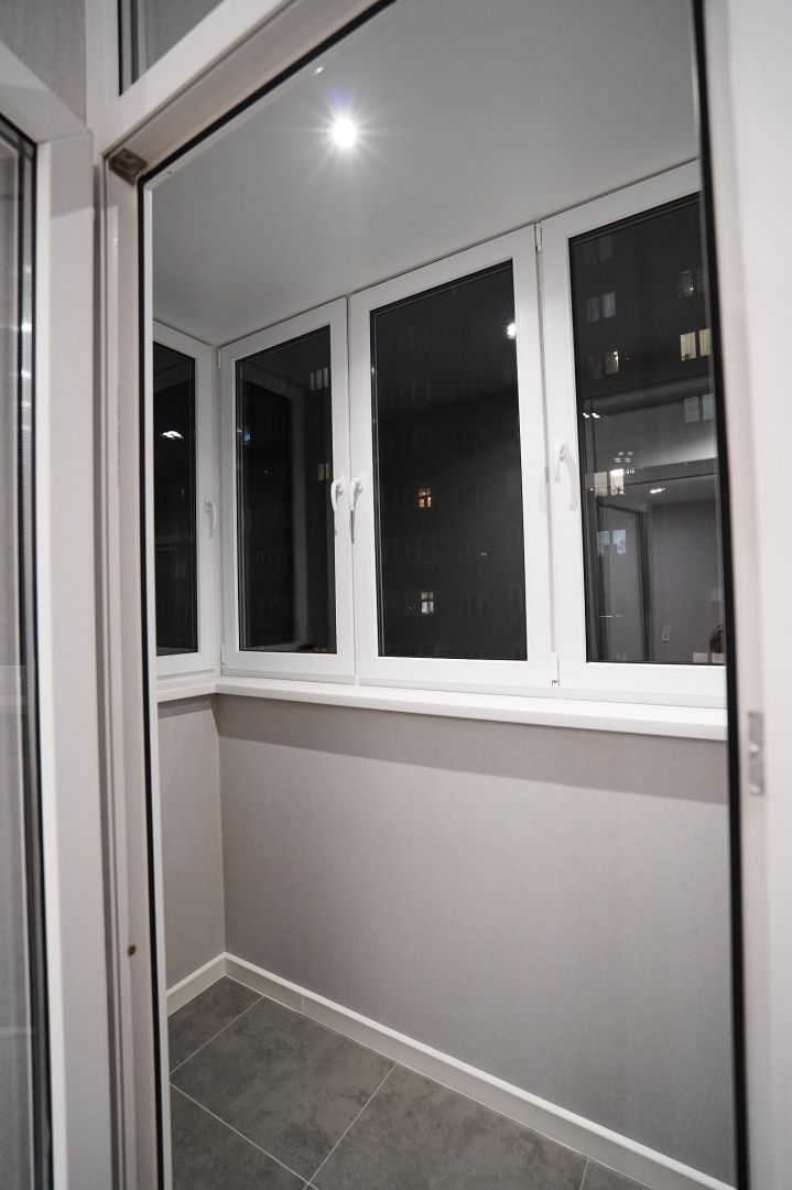 Дополнительно вывели трассы под сплит-системы. Утеплили лоджию по периметру с помощью Пеноплэкса и газобетонных блоков, установили пластиковый подоконник, на пол уложили керамогранит с системой «теплый пол».